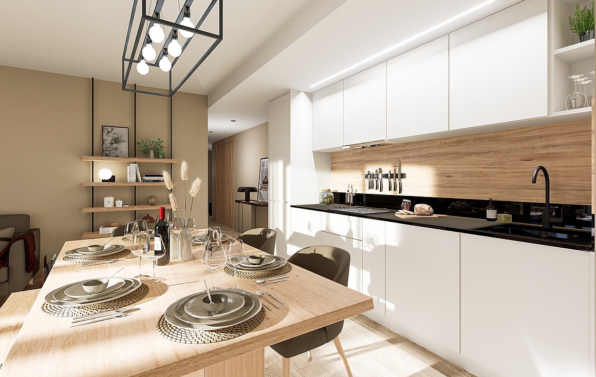 The project to be built over 4 floors and to RT2012 standards for thermal insulation, extra sound insulation will also be added. Built by a developer with over 33 years of experience, each apartment comes with underground parking (larger apartments come with two spaces) and there is the possibility to add an electric charger at an extra cost. With fully equipped Fournier kitchens complete with granite work surfaces, each will enjoy underfloor heating with individual gas boiler, equipped bathrooms, washing machine, digital code/interphone, cave and ski locker.
