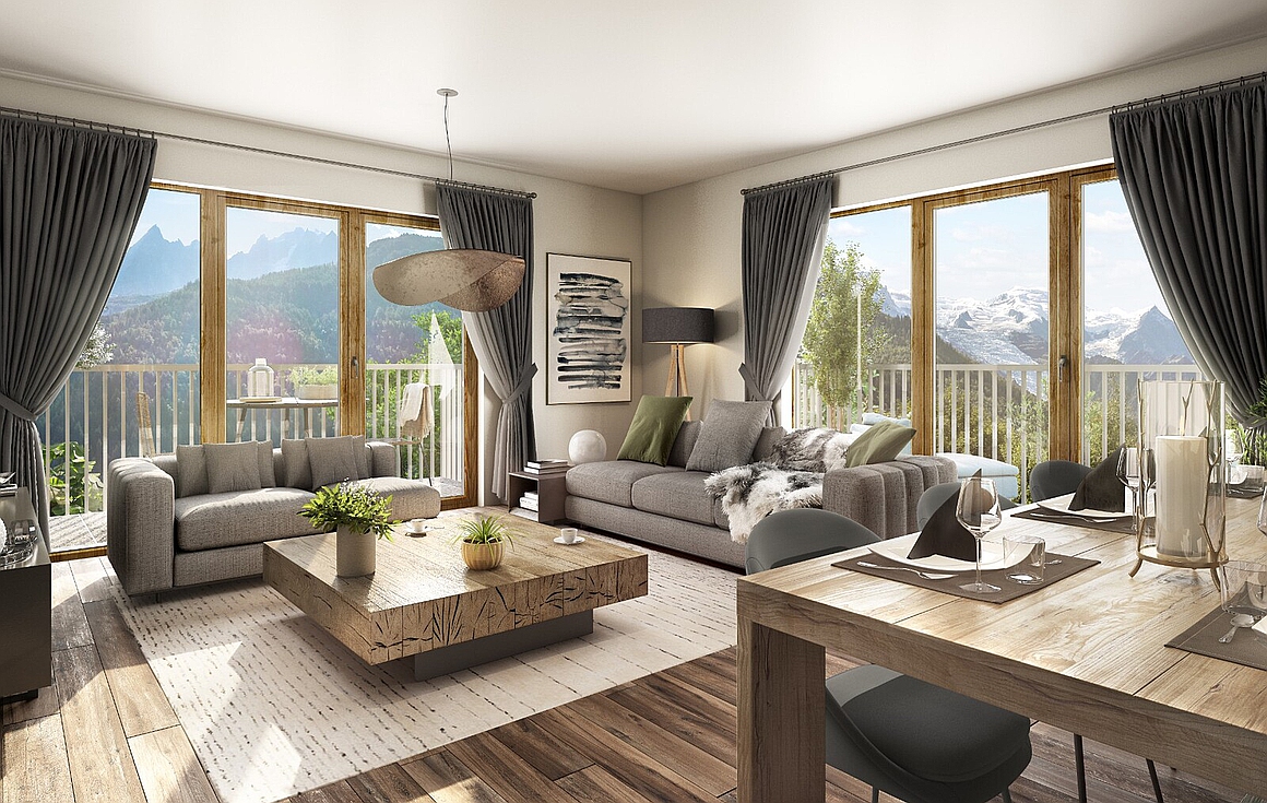 In an outstanding location just a short 3 minute walk to the main square and train station as well as being only 400m from the L'Aiguille du Midi lift, this brand new project of 1 - 3 bedroom apartments will offer amazing unobstructed views of Mer de Glace, Mont Blanc and Les Brevieres. With larger apartments currently available by combining apartments next to each other, the one bedroom apartments will offer surfaces of 51m2.