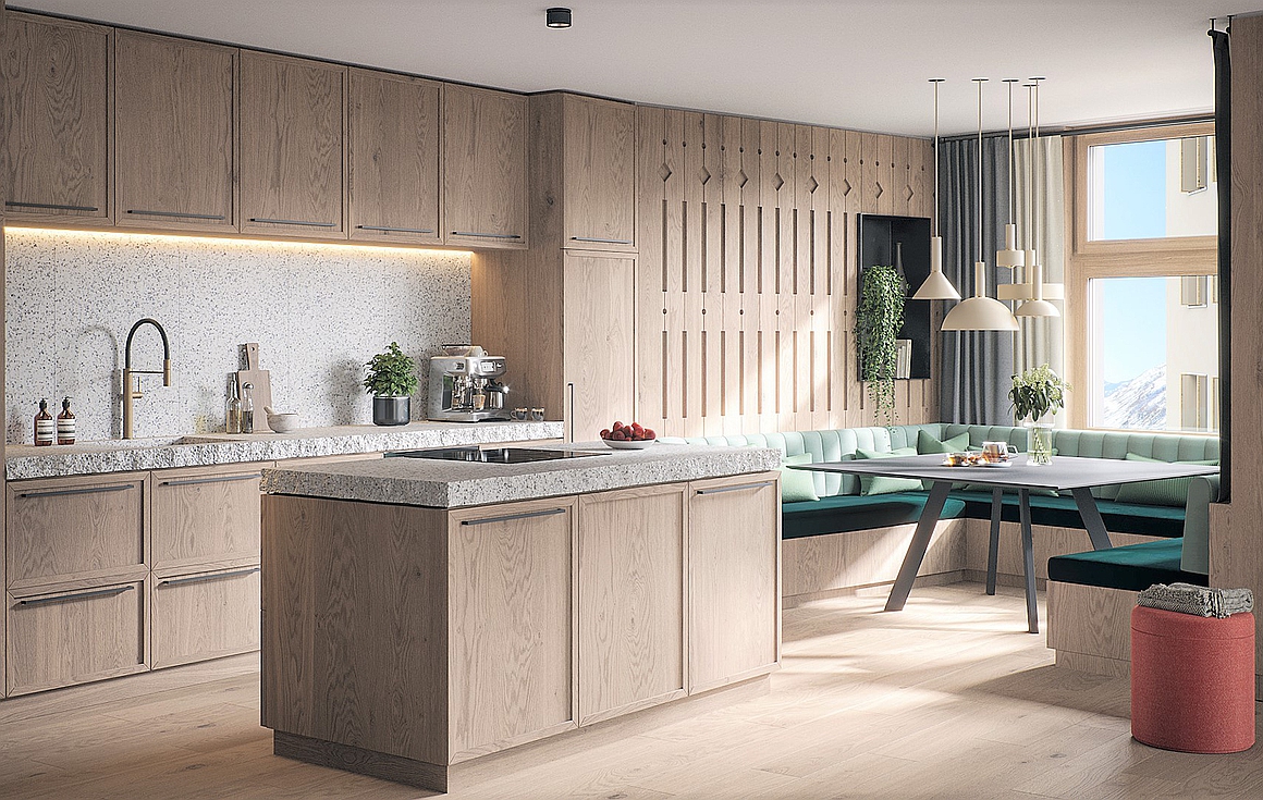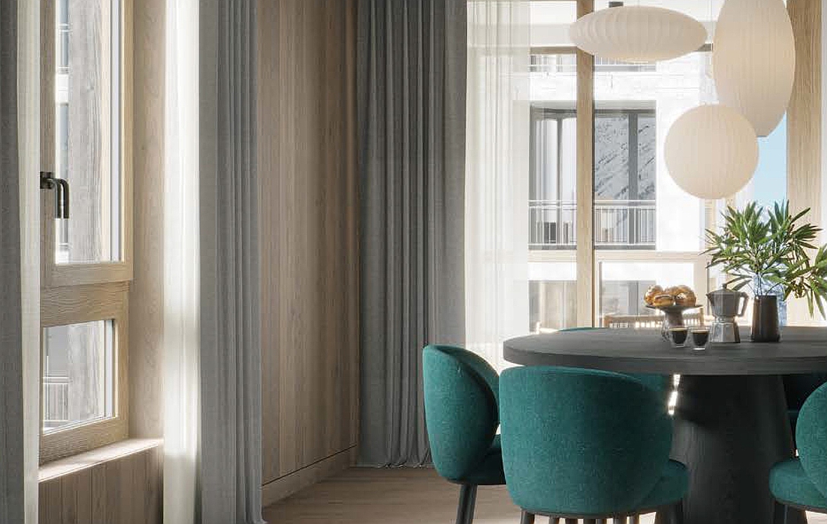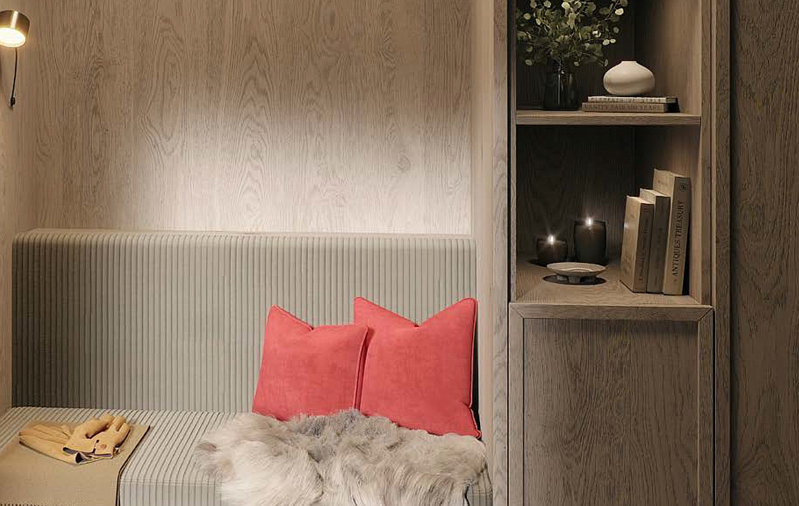 At the entrance to each apartment you will find an oak seating area, while the open fireplaces are surrounded by natural stone giving the property a charming character. Bedrooms will enjoy oak walls and flooring and returning to the kitchen and living space, the oak finishes with natural stone and Gessi fittings will provide high end detailing.