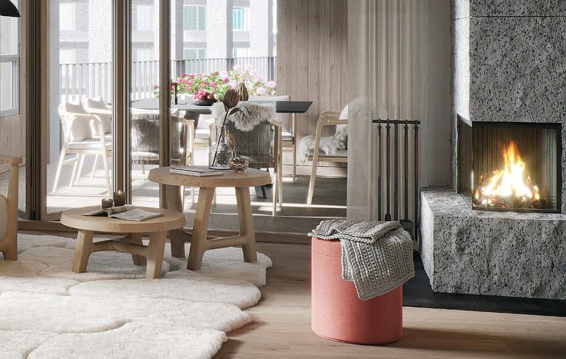 - Fireplace in each apartment
