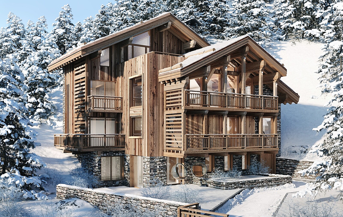 This exclusive upcoming collection of just 3 private detached chalets now for sale in Meribel awaits you. A rare opportunity, bask in the sun-drenched beauty of the off plan 5 bedroom chalet complete with swimming pool, where uninterrupted vistas of the Meribel valley and the majestic Tougnète summit paint the backdrop of your daily life. Providing a surface of 378m2 over 4 floors and 60m2 of balconies, the ski slopes and lift are literally 350 meters away, while the Meribel Centre shuttle bus stop can be found within 140 meters from the chalet, ensuring seamless connections to the heart of the resort.