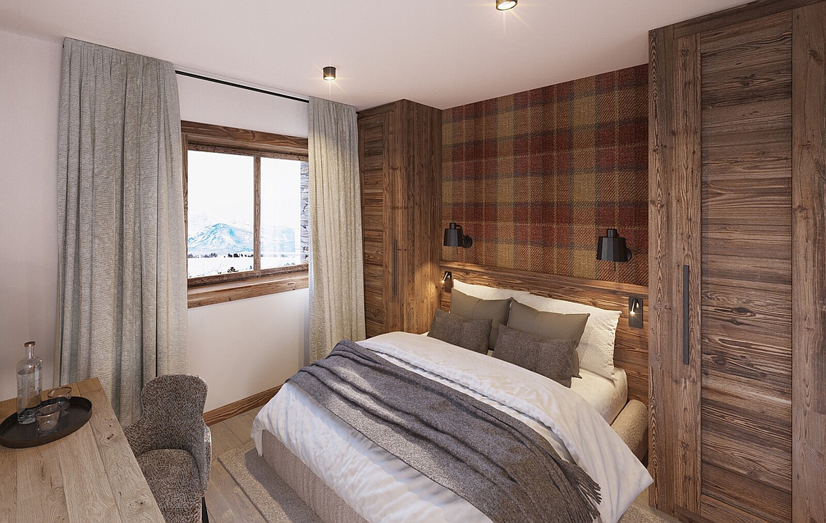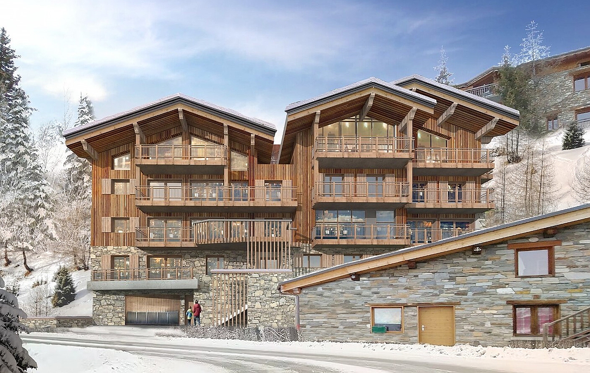 In a peaceful area of the village on a quiet street only used to access the old village, the building comes with a stone and wood facade as well as lause stone roof that blends perfectly with the villages Savoyard architecture.