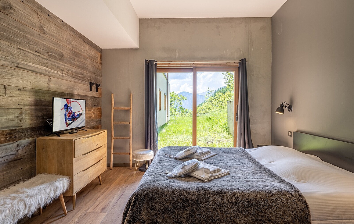 Embrace the tranquility of mountain living in this exquisite property nestled in the heart of a peaceful alpine village. Set within a charming, recently-built chalet, this single-storey apartment offers a spacious and inviting 53m2 living room that seamlessly opens up to the dining room and kitchen. With 5 en suite double bedrooms and a cozy cabine bunk bedroom, this exceptional property accommodates families with ease, creating unforgettable moments in the mountains.