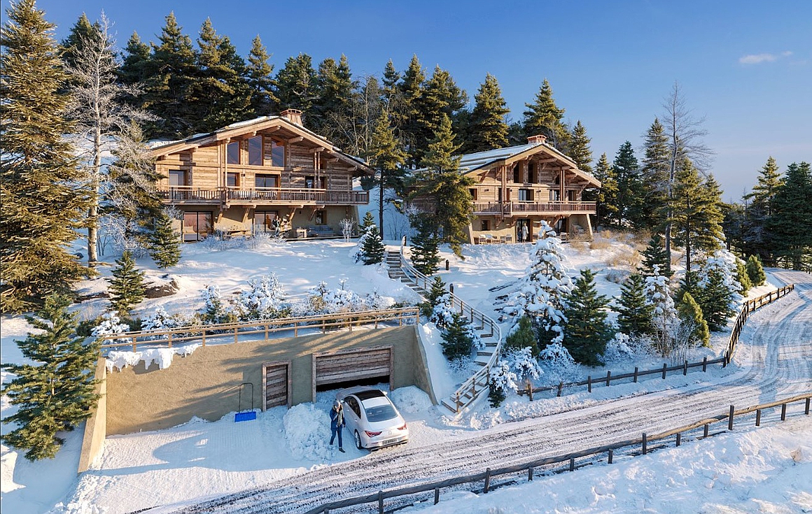 In a perfect position just a 5 minute walk to the centre of the all year round resort of Megeve via a scenic footpath, these two brand new, off plan, luxury 6 en suite bedroom chalets offering surfaces of 395m2 and 403m2 that will enjoy sweeping open views of the surrounding mountains also enjoy ski in access when snow conditions allow. With the Mont d'Arbois ski area just 3 minutes away by car, accessed via the Chamois lift situated 950m from the chalets, here you can enjoy a premier location that combine tranquillity and convenience.