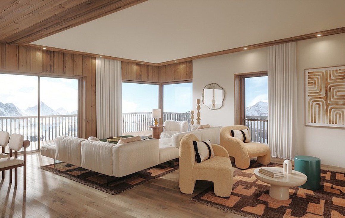 With apartments enjoying stunning views of the mountains or ski slopes and being built by a renowned developer of the Alps, the residence will blend with the contemporary architecture of the resort and will mix wood and stone in harmony with the white facades. To be delivered in December 2026 and centrally situated to access the local amenities, within the residence, owners will enjoy high end finishes in each property and access to the contemporary wellness area that includes swimming pool, sauna, hammam, jacuzzi and gym.