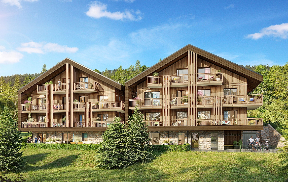 Set in the stunning dual season resort of Les Carroz within the huge 265km Grand Massif ski domain that includes Samoens and Flaine, this brand new project of 15 apartments of 1 - 4 bedrooms over two chalets, is ideally located just a short 100m walk to the slopes, 200m to the gondola and just a few minutes walk to the centre of this bustling village. Just 60 mintes from Geneva airport, the 4 bedroom duplex penthouse apartment on the second and third floors will offer an interior surface of 113m2 and balcony of 12m2.