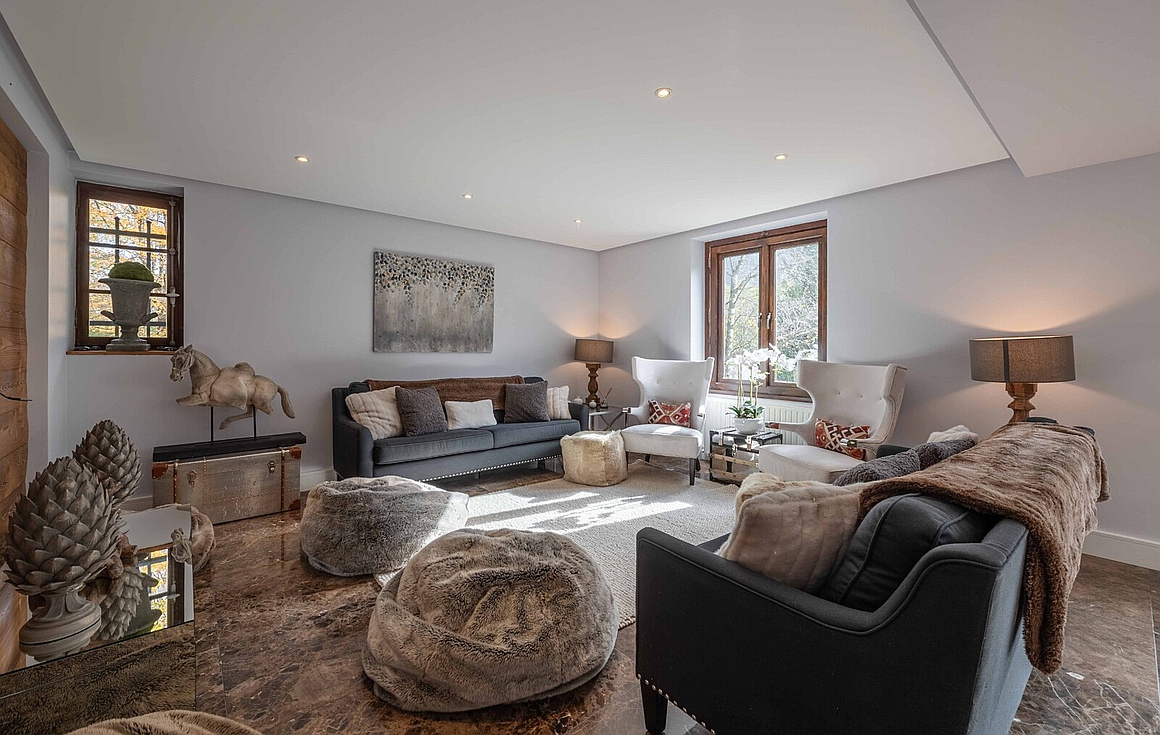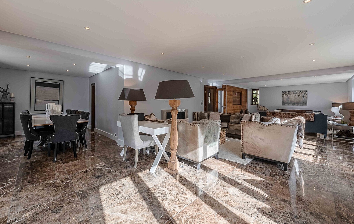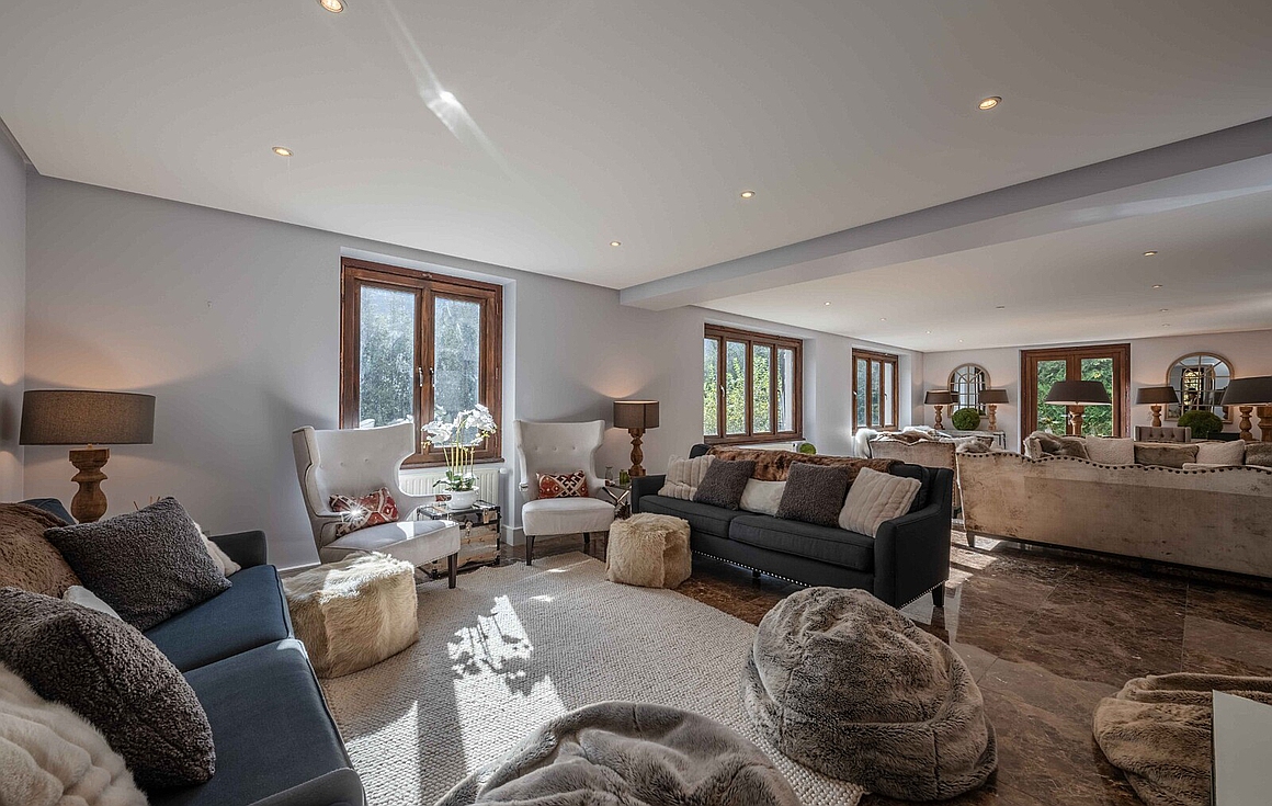 Designed for both comfort and luxury, the chalet boasts eight beautifully appointed en-suite bedrooms, offering ample space for large families or guests. The bright and airy living spaces, enhanced by large windows, open onto an expansive terrace that captures the stunning mountain scenery, creating an idyllic retreat in the heart of the Alps.