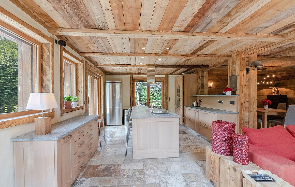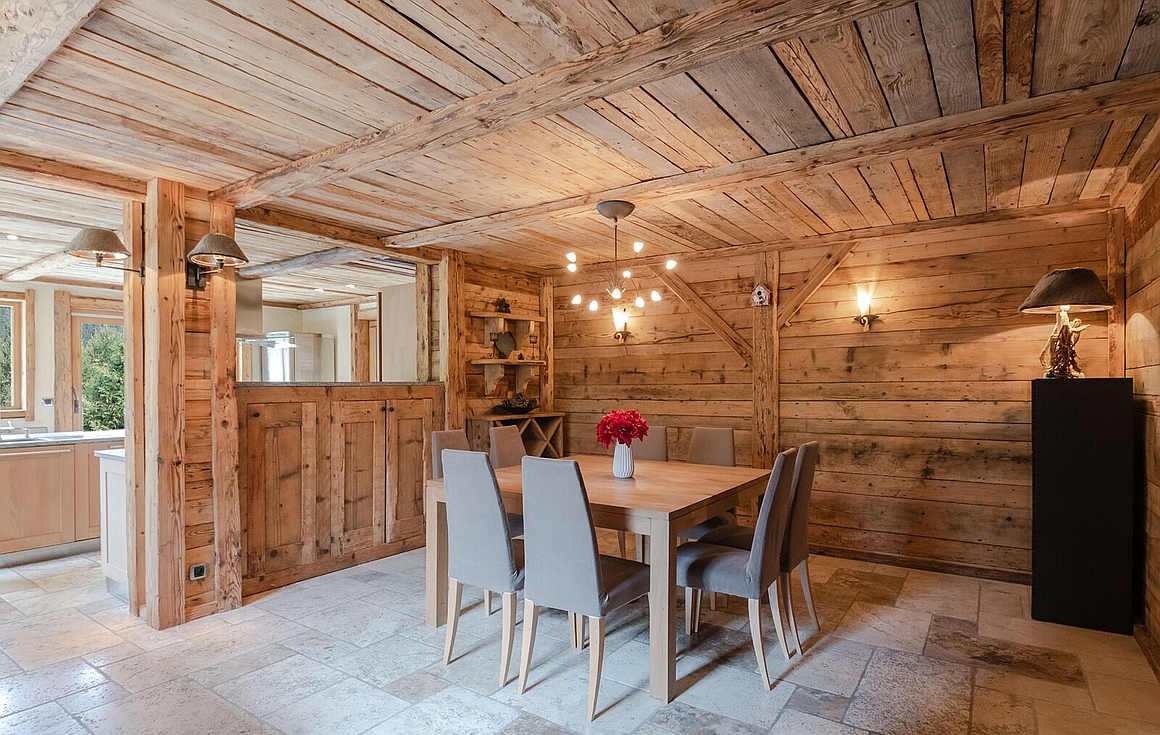 For those seeking relaxation, the basement level is dedicated to wellness and leisure. A beautifully appointed spa area includes a sauna and Japanese bath, providing a serene escape after a day on the slopes, while a spacious wine cellar offers the perfect setting to store and savour fine vintages. Ample storage rooms ensure the practical needs of mountain living are fully catered for.