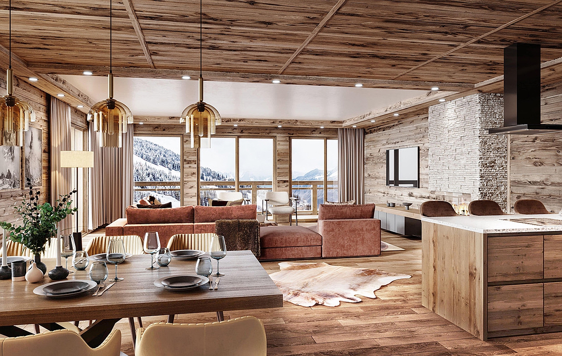 Made up of 3 - 6 bedroom apartments, the development will blend traditional and authentic architecture along with contemporary comfort wth alpine interiors that utilise wood clad walls and parquet flooring.