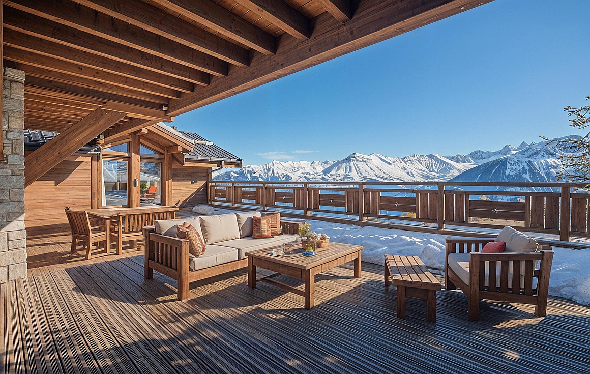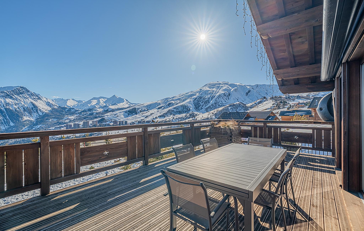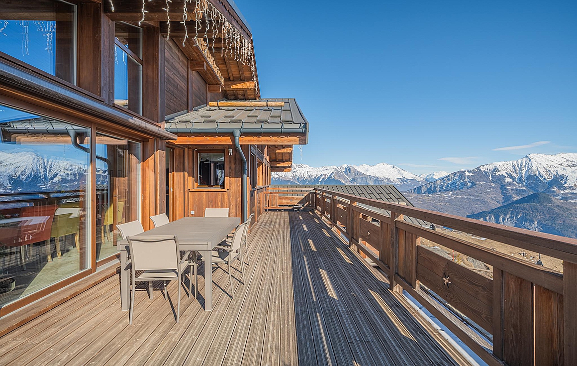 For relaxation after a good day of outdoor activities, the chalet also comes with its own hammam, fitness room and wood fired sauna. With two large garages and exterior parking for 8 cars, there are multiple sun terraces including one huge terrace of 116m2 to relax and take in the views.