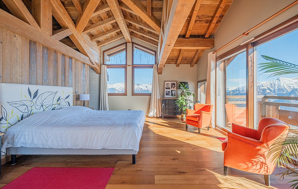 This exceptional property with magnificent and breathtaking panoramic views all around that was built in 2022 and combines a surface of 629m2 that exudes pure elegance, modernity and tradition, is the perfect mountain family retreat. Enjoying a 60m2 master suite, 3 junior suites and a 2 bedroom ground floor apartment that can be rented independently of the main chalet the property is currently configured to sleep 18 guests. Sitting within its own grounds of 2500m2, a further 300m2 chalet is possible to be built once all planning permits are approved should the new owner wish.