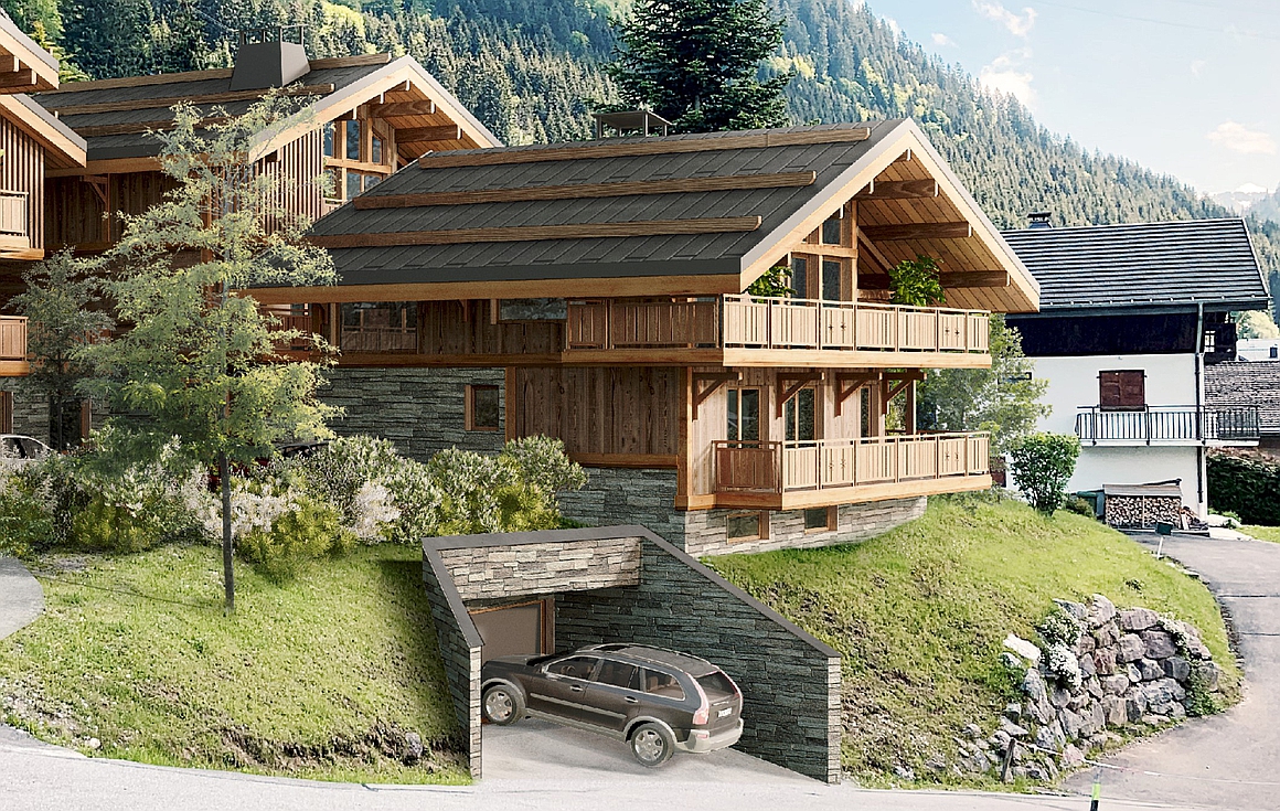 Within the picture postcard, very pretty, chocolate box dual season resort of Chatel at an altitude of 1250m that enjoys access to the huge 650km Portes du Soleil ski domain, this brand new project of three luxury detached chalets all enjoying magnificent uninterrupted 180 degree views sweeping the valley below are exceptionally well placed just 300m to the Super Chatel cable car and resort centre. Chalet A with its 6 en-suite bedrooms that sleeps up to 16 guests, along with its own indoor pool will enjoy an internal habitable surface of 327m2 (excluding the 4 car underground garage, ski lockers with boot warmers and storage areas) along with 117m2 of terraces and balconies.