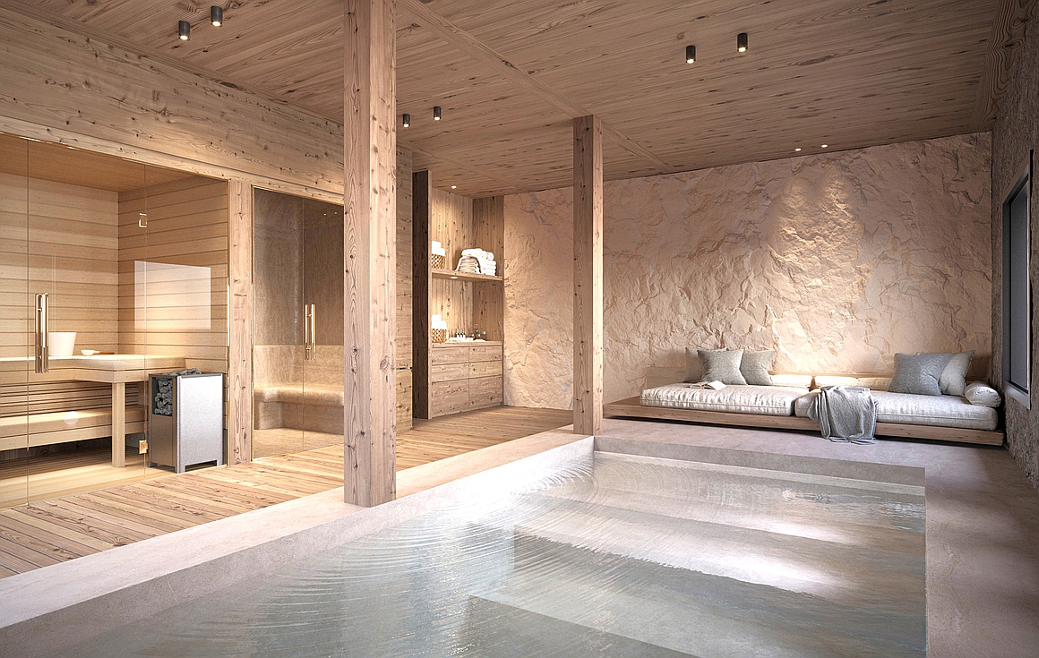 - Spa with swimming pool, relaxation area, sauna, hammamshower, toilet and kitchenette