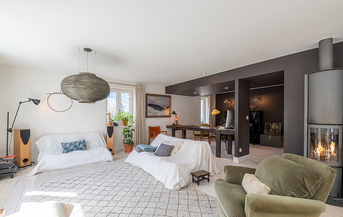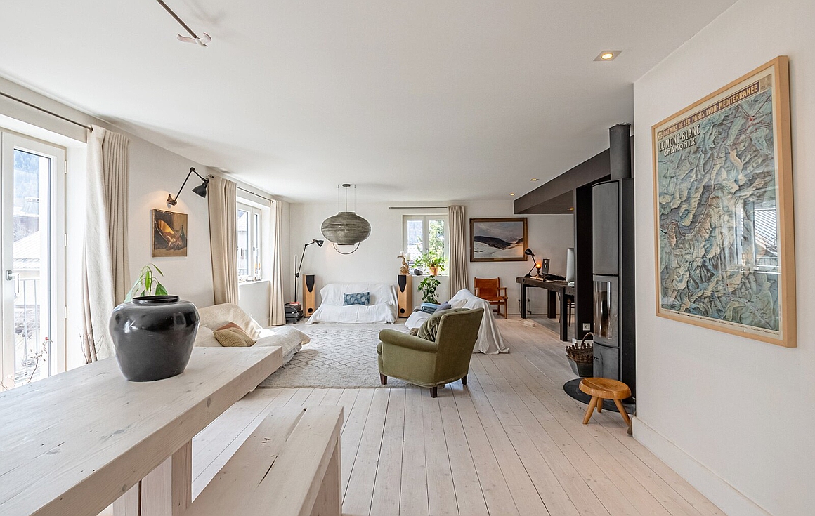 Just a stone’s throw from the village of Les Houches, in the historic hamlet of La Griaz, this unique duplex apartment offers 191 m2 of total floor area (129 m2 Carrez law) and a desirable south east facing orientation. Located on the top floor of a charming residence, it enjoys panoramic views of the Mont Blanc massif and combines authentic alpine character with excellent potential. With three bedrooms and generous living areas, this property is perfectly suited for those seeking both comfort and a distinctive mountain lifestyle.