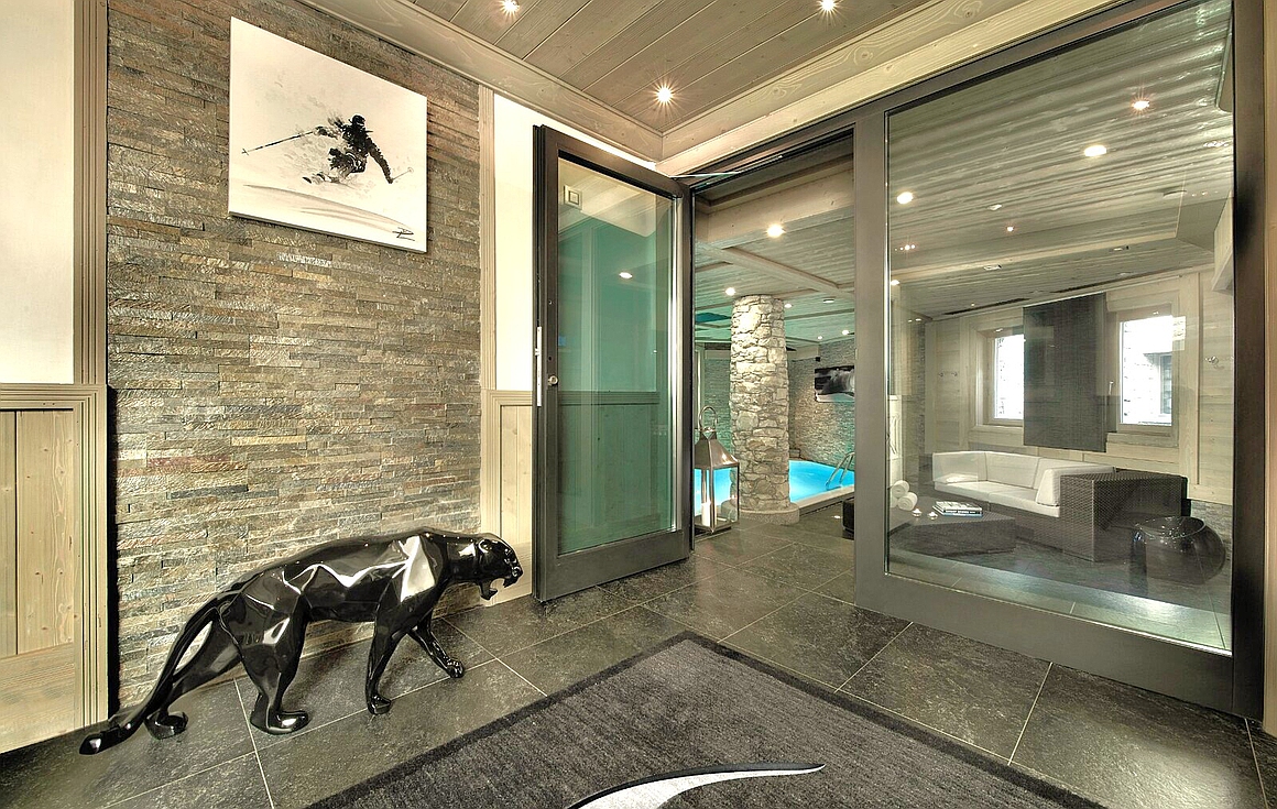 As well as facilities that include the swimming pool and relaxation area, the chalet also offers a hammam, massage room, home cinema and ski room.