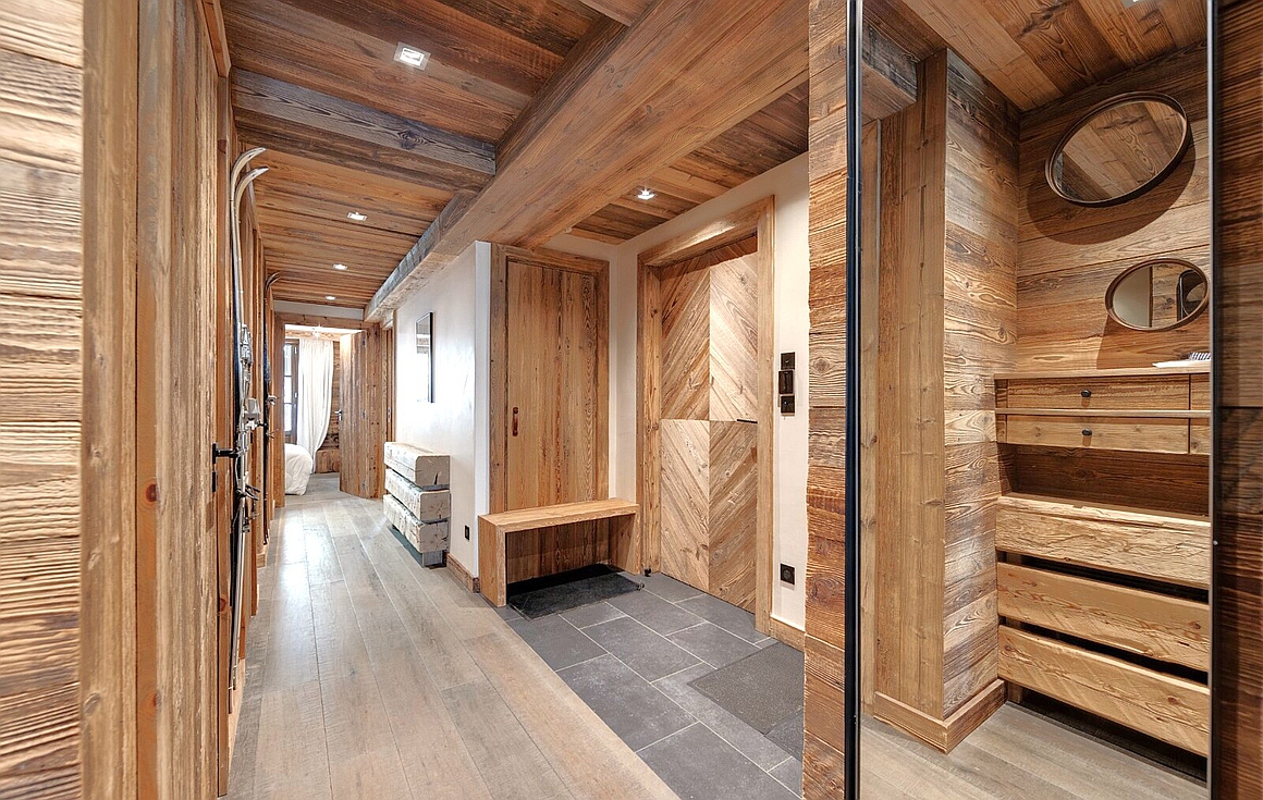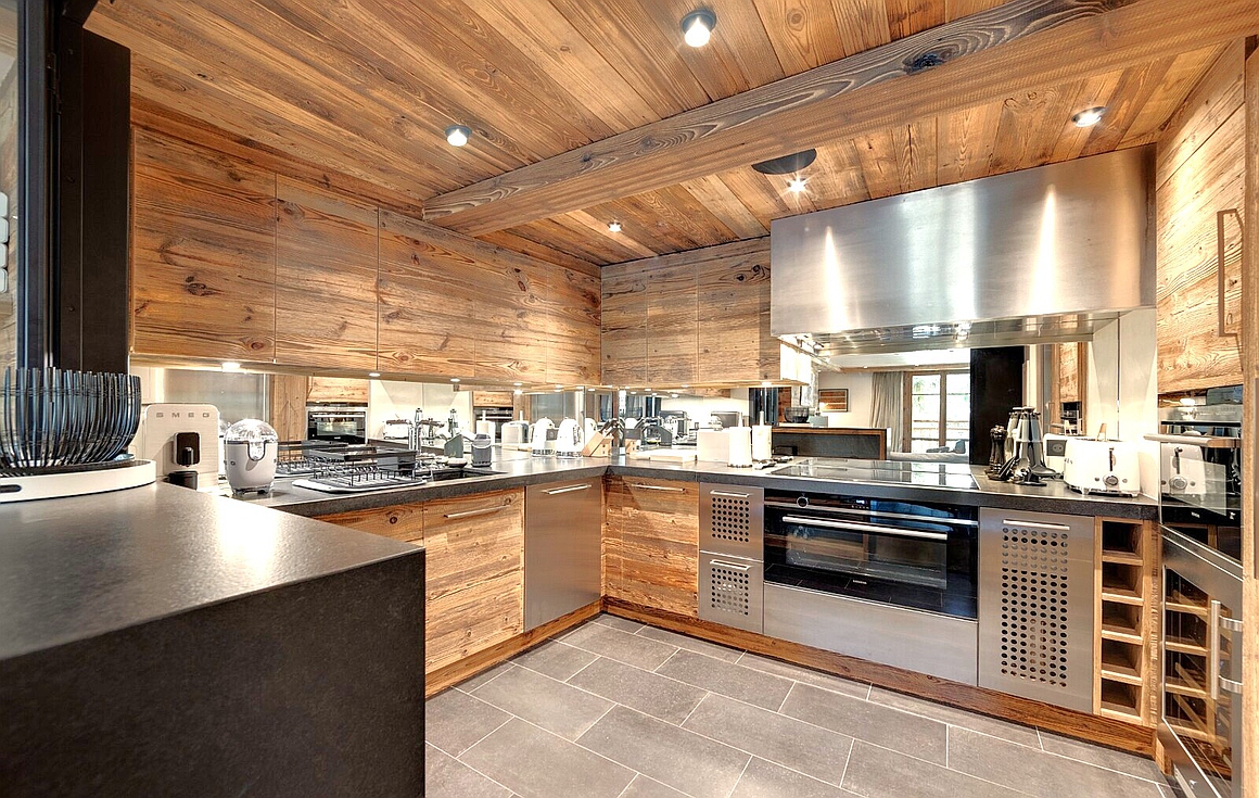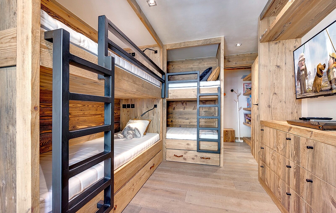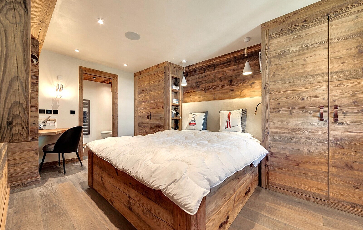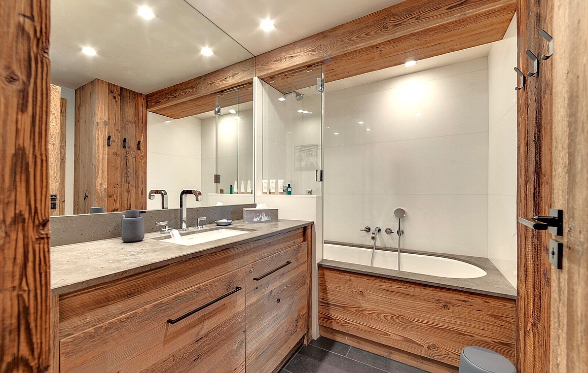 With a sunny aspect thanks to the south facing orientation, the interiors are filled with natural light throughout the day. The spacious living room, complete with a fireplace, creates a welcoming space to relax after time on the slopes. A fully equipped open-plan kitchen flows into the dining area, making it ideal for hosting family and friends. The use of high-quality materials and tasteful décor gives the property a warm and inviting atmosphere.