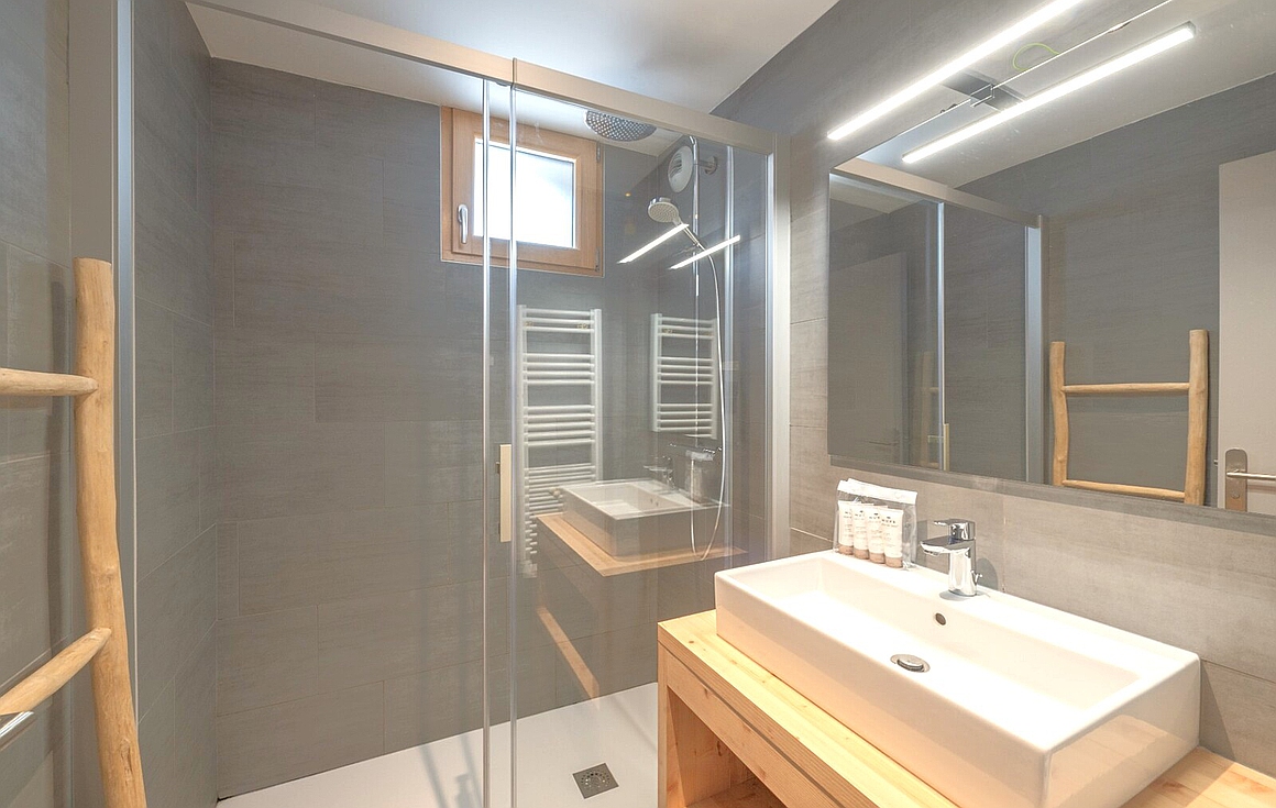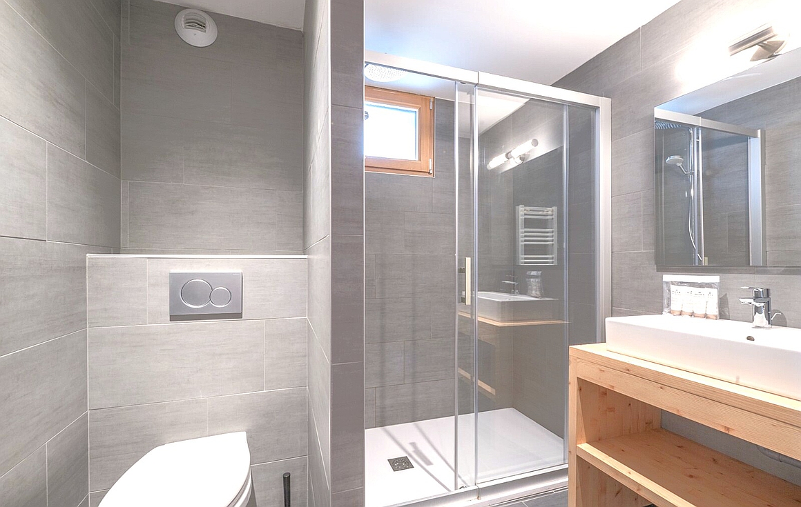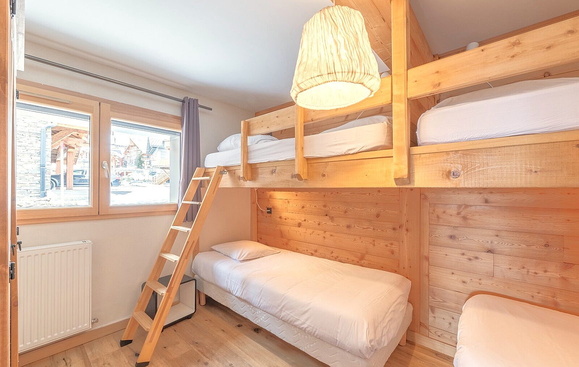 The bright living room flows seamlessly into a dining space and fully equipped kitchen, offering the perfect setting to gather with family and friends after a day on the slopes. Four double bedrooms provide restful nights, each styled with Alpine character, while three modern bathrooms and three toilets ensure comfort and convenience for all.