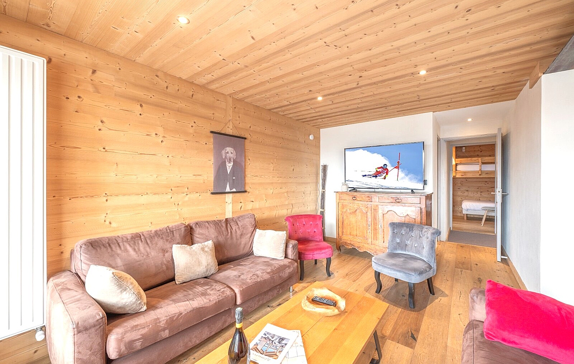 Welcome to this spacious 109m2, 4 bedroom south facing retreat set on the first floor of a charming Alpine chalet in the heart of Alpe d’Huez. Designed with comfort and style in mind, this family haven blends natural wood finishes with soft, contemporary touches to create a warm and inviting atmosphere. Simply park the car and walk to everything.