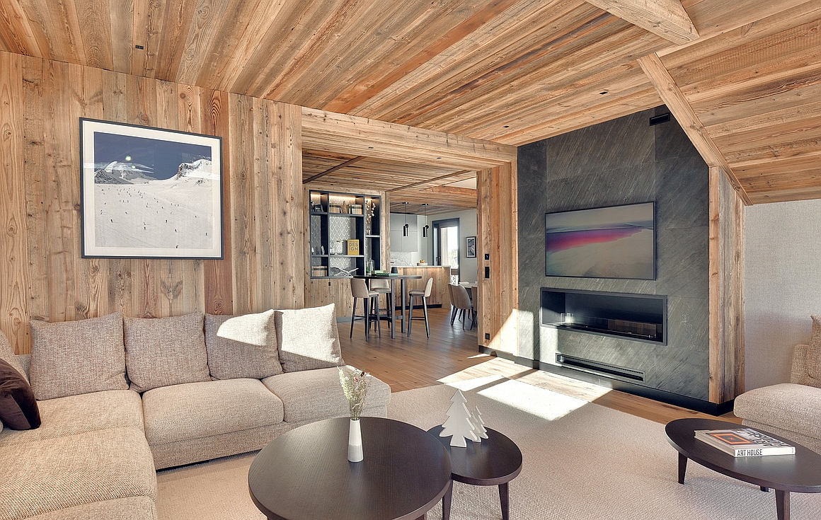 Part of a larger development of luxury apartments across 7 chalet residences, the apartment boasts an amazing spacious interior that includes a living open plan area of 100m2 complete with wooden ceiling, while the rest of the apartment comes with sauna, fitness room and family tv room.