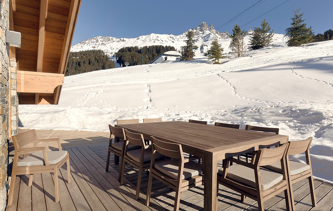 Set in an incredible location on the site of the former Club Med hotel that can be found direclty on the Rhodos piste, this outtanding 7 bedroom ski in and out duplex apartment of 326m2 with its huge terrace of 103m2 has been built in the most sought after area of Meribel.