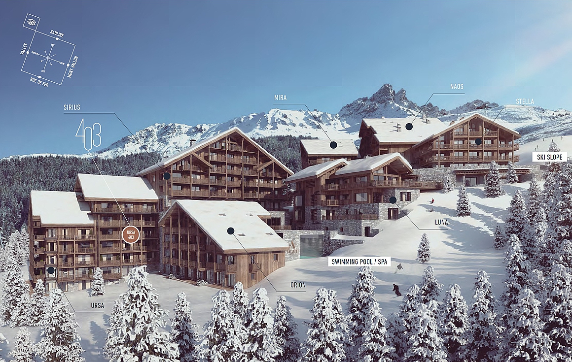 Set in an incredible location on the site of the former Club Med hotel that can be found direclty on the Rhodos piste, this outstanding 4 bedroom (3 double + cabine) ski in and out apartment on the 4th floor that will come with a surface of 118m2 along with a private balcony of 26m2 has been built in the most sought after area of Meribel and is now ready to move into.