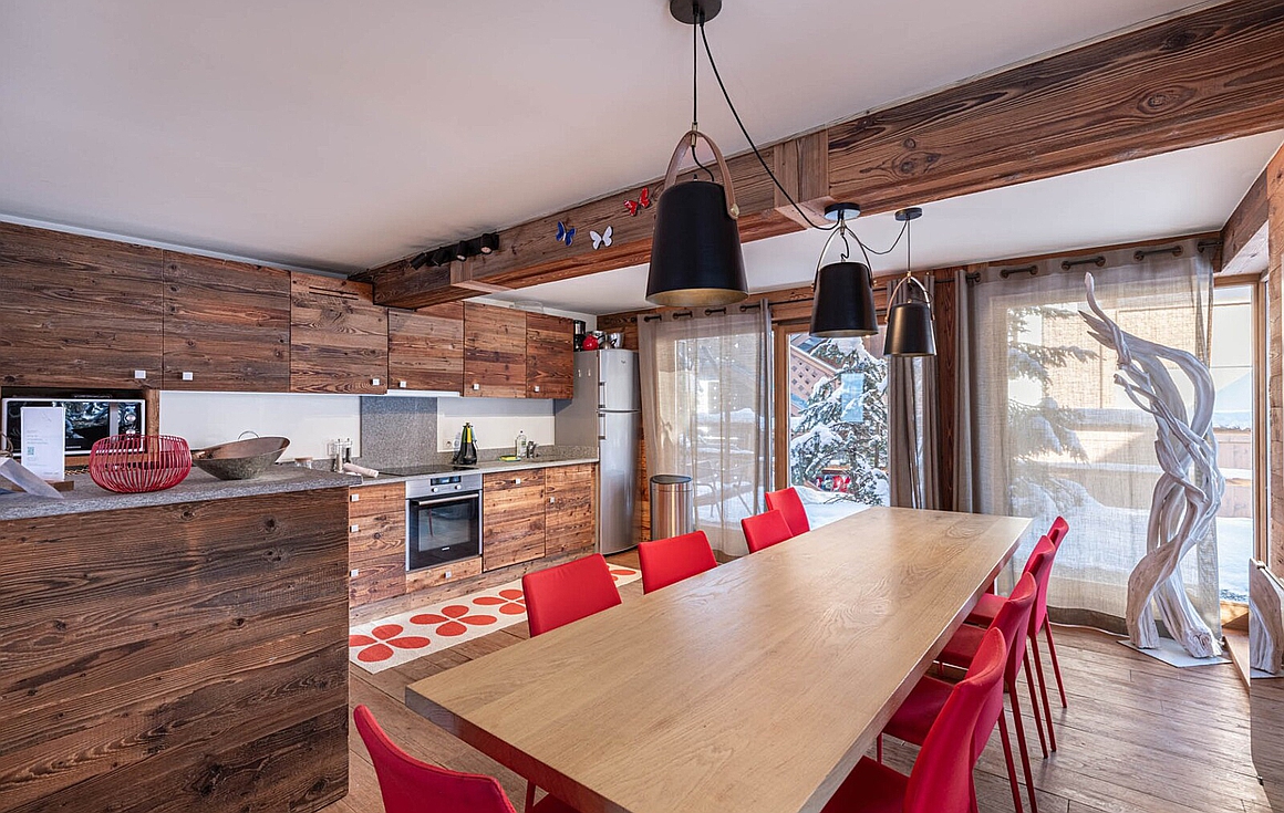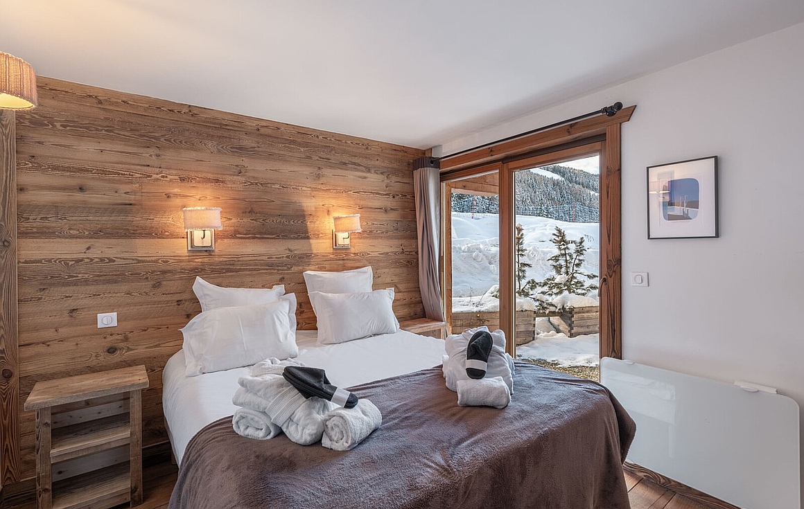 Located in a peaceful setting with south-facing exposure, this superb 153m2 apartment offers five en-suite bedrooms, comfortably accommodating up to 10 guests. Set in a privileged ski in and out location, it is the perfect retreat for families and groups seeking both luxury and convenience in the mountains.