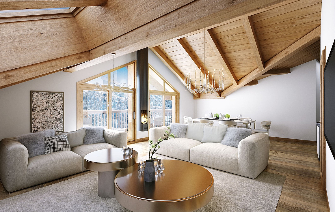 Under construction and to be delivered in quarter 2 of 2026, the residence itself of traditional architecture will combine larch wood and stone on the exterior. Inside, apartments will enjoy high end finishes including fully fitted kitchens, underfloor heating, parquet flooring in the living areas and bedrooms as well as property enjoying their very own expansive outdoor private space that offers spectacular views in all directions. In addition underground parking, ski lockers and private cellars are included in the price.