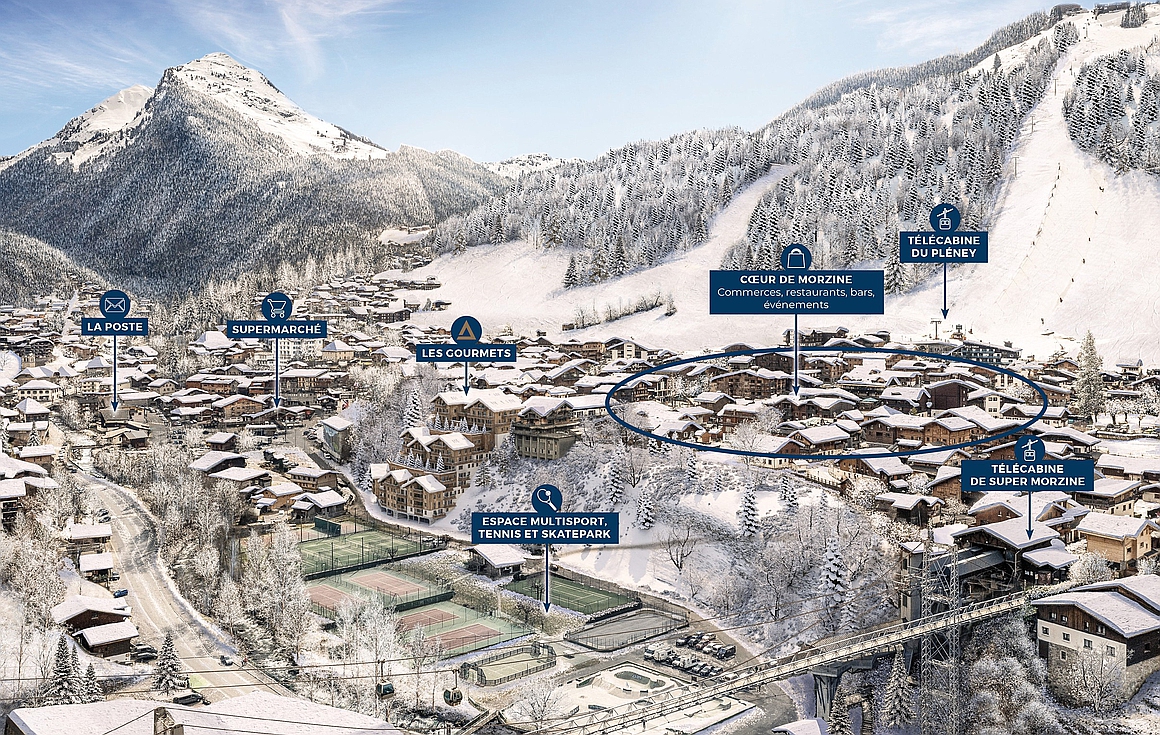 Set within the dual season resort of Morzine, that provides seamless access into the huge Portes du Soleil ski area, this brand new project of 1 - 5 bedroom apartments in an ultra central location where everything can be reached on foot, from the residence the Super Morzine gondola is just 200m away, while the Pleney slopes can be found only 400m away and the future direct gondola to Avoriaz will be perfectly placed just 50m from the residemce. The 3 double bedroom apartments will enjoy an interior surface of 72 - 88m2 and private terraces totalling 21 - 31m2.