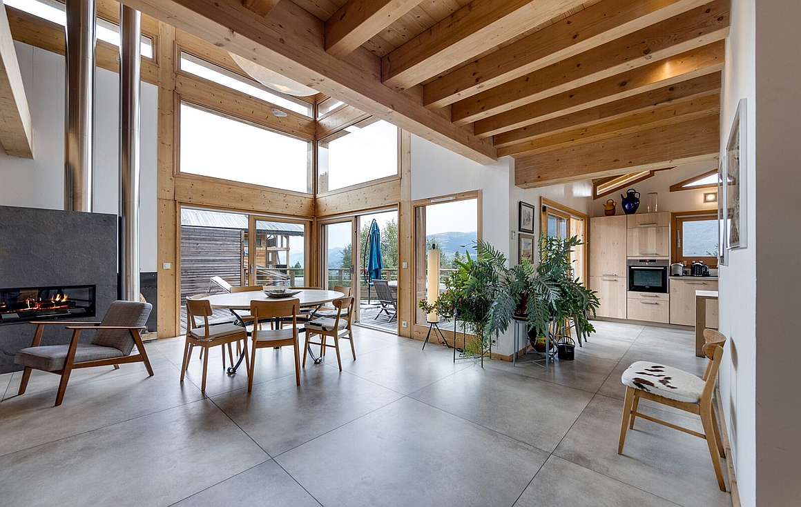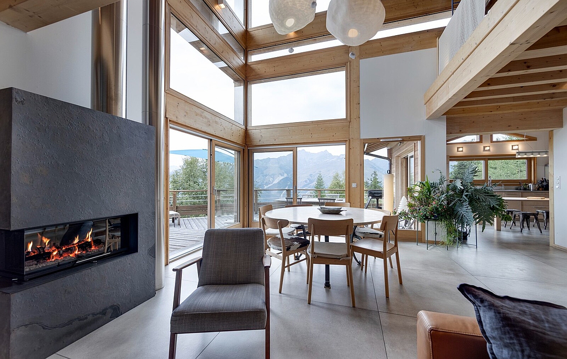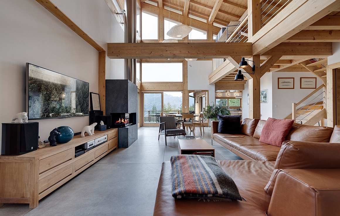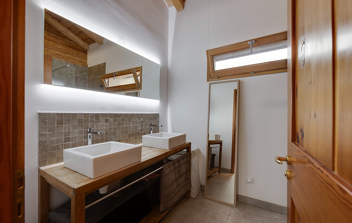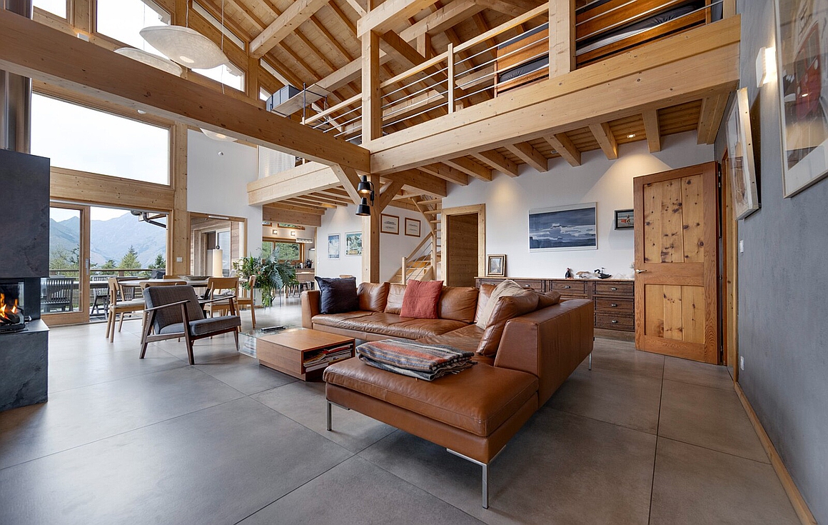 Built in 2014, this 320m2 chalet includes a two-bedroom apartment on the ground floor, making it ideal for guests or as a separate rental. The main residence features several en-suite bedrooms, a spacious open-plan living area with fireplace, and a fully equipped kitchen that opens onto a sun-drenched terrace — perfect for enjoying mountain sunsets. A mezzanine level offers a dedicated office and two additional sleeping areas, ideal for larger families or flexible use.