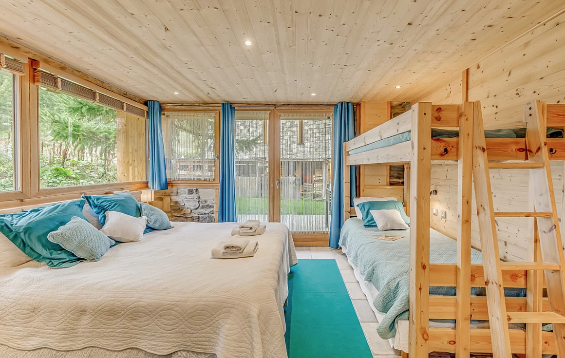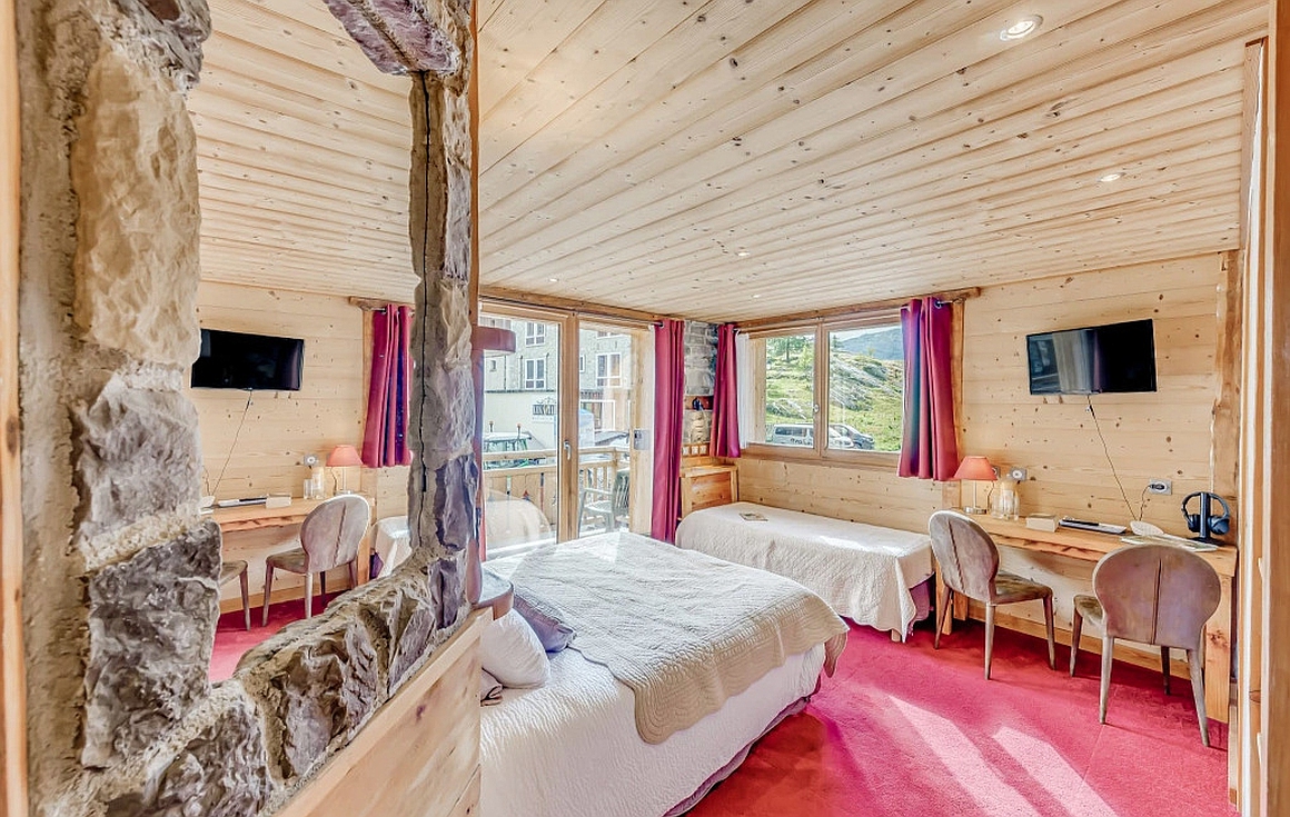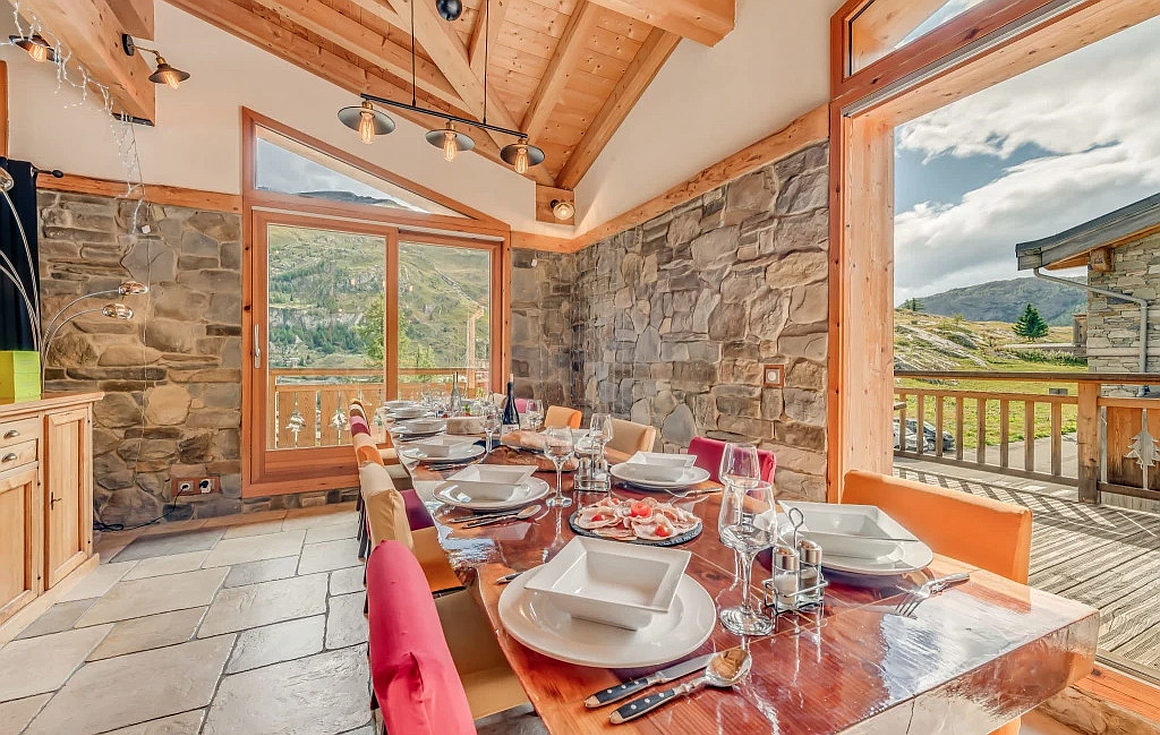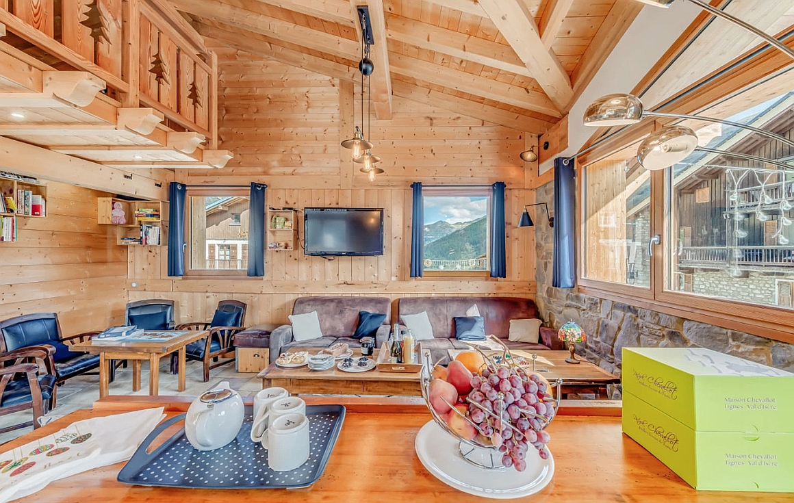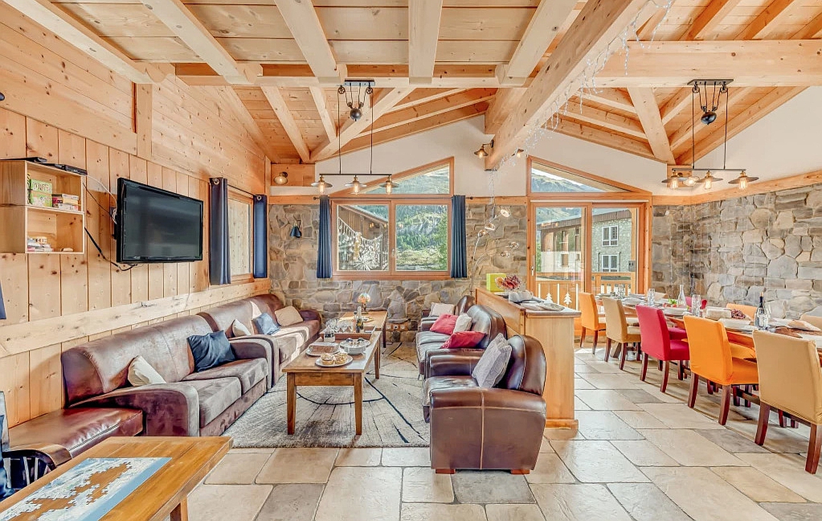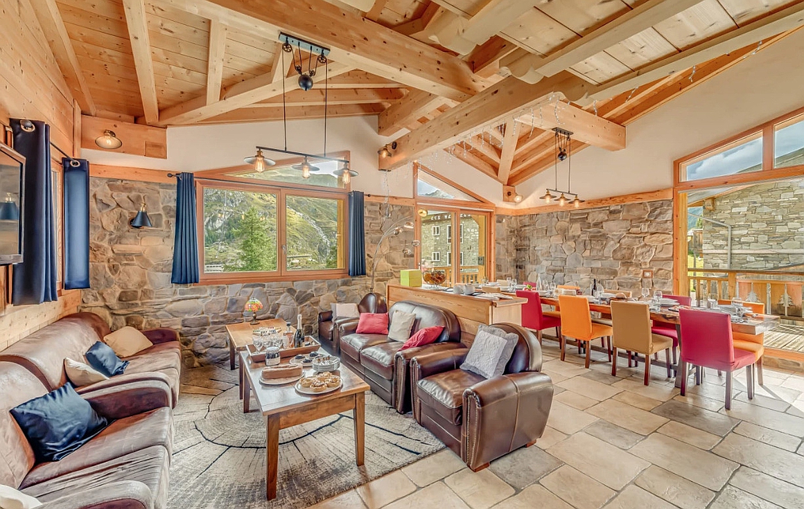Located in the peaceful and sought-after area of Tignes Les Boisses, this charming 240m2 chalet enjoys triple exposure and panoramic mountain views. With five en-suite bedrooms and a bright, south-east facing living space, this property offers generous volumes and seamless access to the slopes—just 300 metres away, with the possibility to ski directly back to your door.