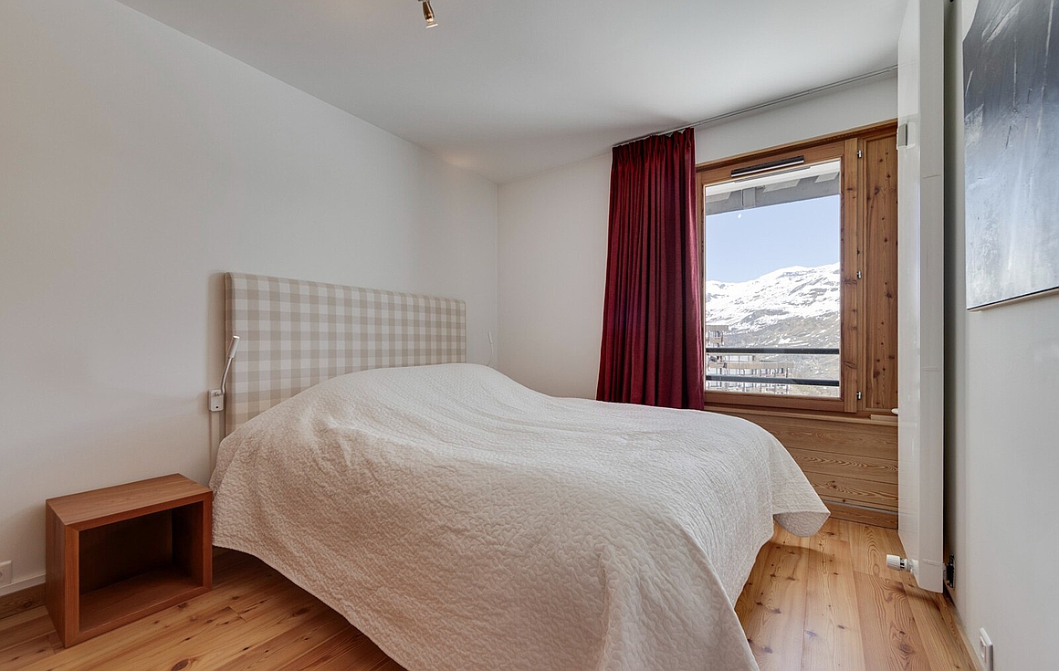 Located in a sought-after residence in Tignes 2100, this beautifully renovated set of two south-facing apartments of 73m2 sits on the same floor, offering flexible living and panoramic views of La Grande Motte, Lake Chevril, and La Grande Sassière. The main apartment features 2 bedrooms and enjoys a light-filled living space with exceptional mountain views, while the adjoining studio apartment is designed as a private hotel-style suite—perfect for guests, extended family, or independent teenagers.