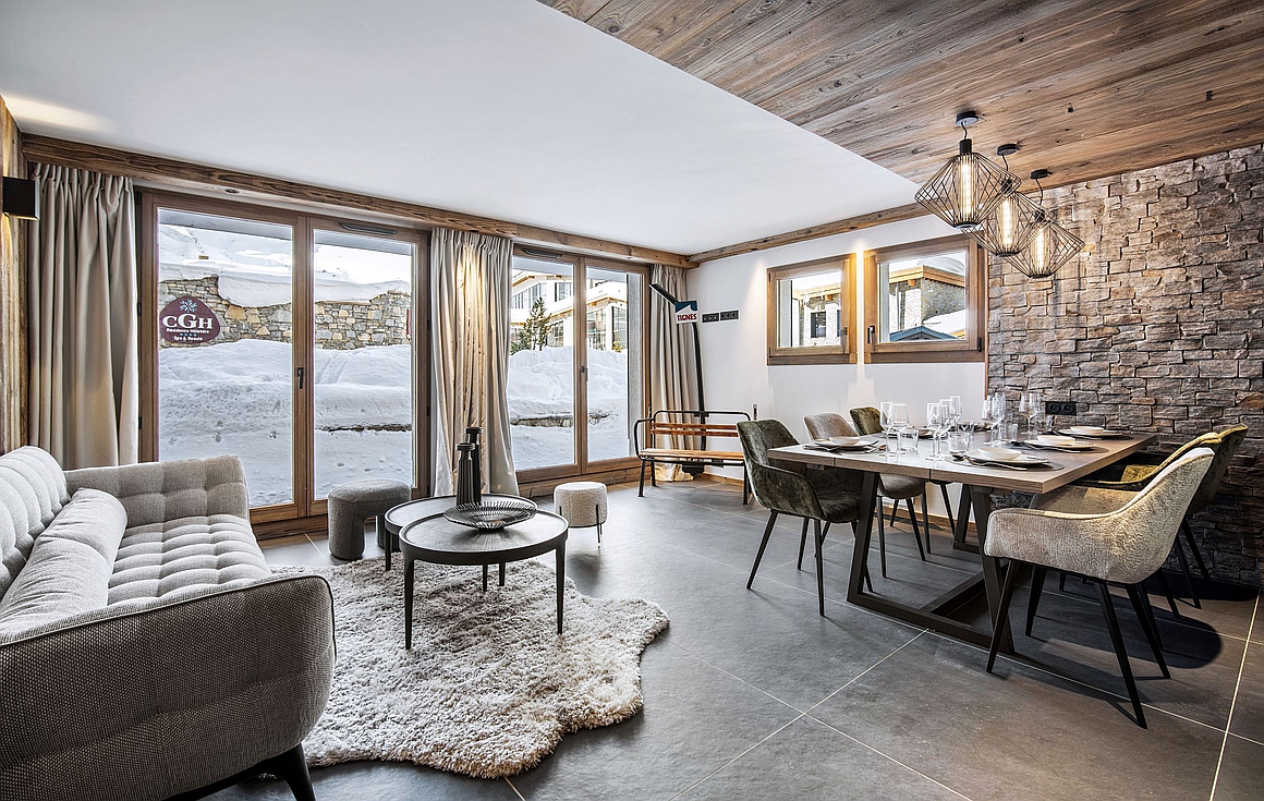 Located in the highly sought after Tignes Val Claret, this beautifully appointed 3 bedroom apartment of 82m2 with its own 16m2 terrace that comes with west-facing mountain views is sold fully furnished to give a ready to move into serene alpine lifestyle just 50m from the slopes. Ideal as a year-round residence or mountain retreat, it combines modern comforts with the charm of traditional alpine living.
