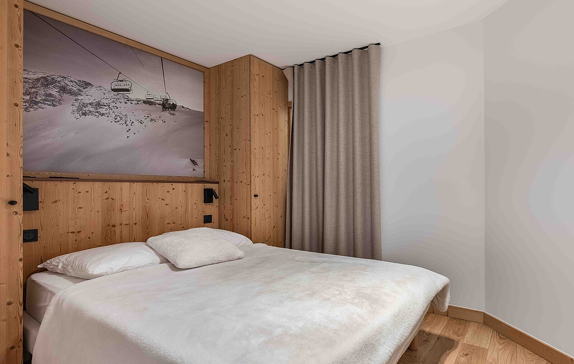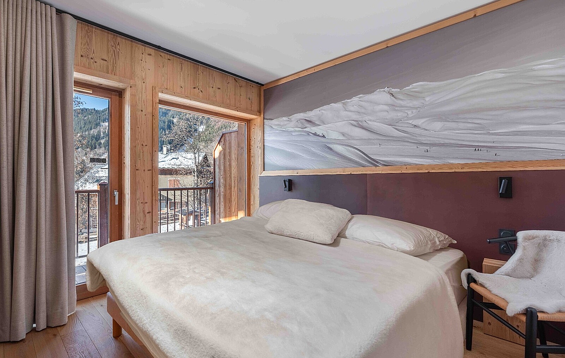 Tucked away in the picturesque village of Champagny-en-Vanoise, this exquisite 72 m2 two-bedroom apartment enjoys a rare double exposure with balconies facing both south and west, allowing for stunning alpine light and breathtaking mountain views. Situated within the brand-new Grand Bouquetin development — a boutique residence of just 14 apartments — this home offers peaceful, year-round mountain living with effortless access to world-class skiing and summer hiking in the heart of Vanoise National Park.