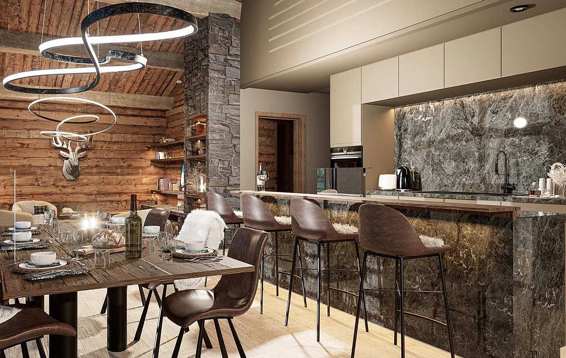 Of contemporary design and elegant architecture and in a protected area with no construction possible in front, the chalets will be located just 1.5km from the centre of the resort. Of classic freehold nature with no rental obligation if owners dont wish to (still possible to rent and reclaim VAT if desired), will blend wood and stone together, On the ground floor, a generous double garage and entryway welcome you home.
