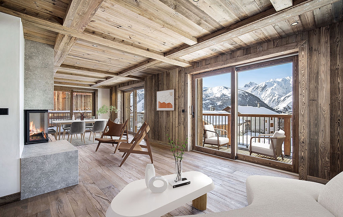 In the heart of the Belleville Valley, this newly renovated south-facing chalet spans four levels and features five bedrooms including two master suites, all set against a backdrop of breathtaking mountain views. Tucked away in a peaceful, unspoilt location, this exceptional 234 sq.m property offers the perfect blend of alpine authenticity and contemporary luxury.