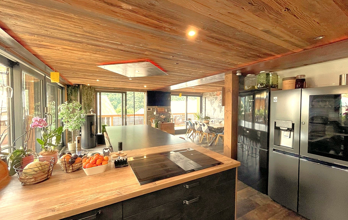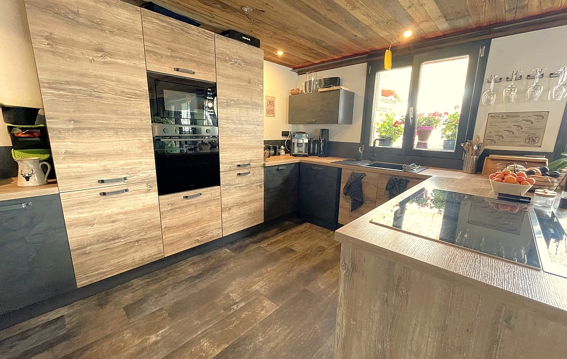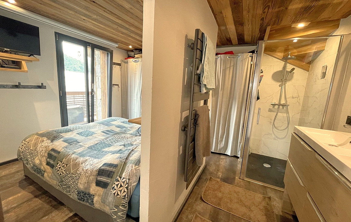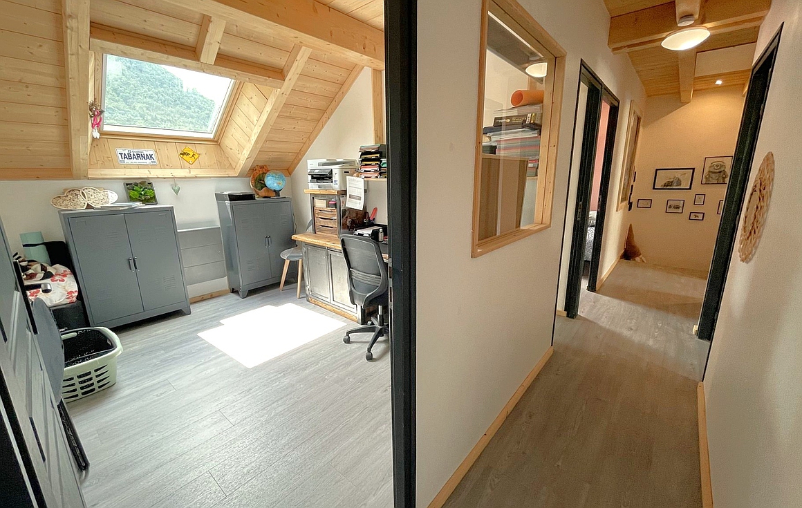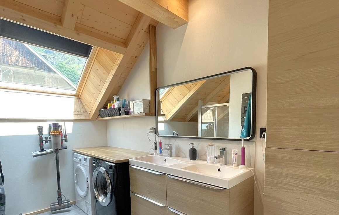 Built in 2021, the ground floor comprises a large entrance, extra large garage and storeroom, while the first floor contains the enticing 64m2 grand and bright open living area with a fitted and equipped kitchen. This floor also contains a master suite with shower room separate toilet. On the top floor of the chalet, the further 5 bedrooms can be found along with a shower room and separate toilet.