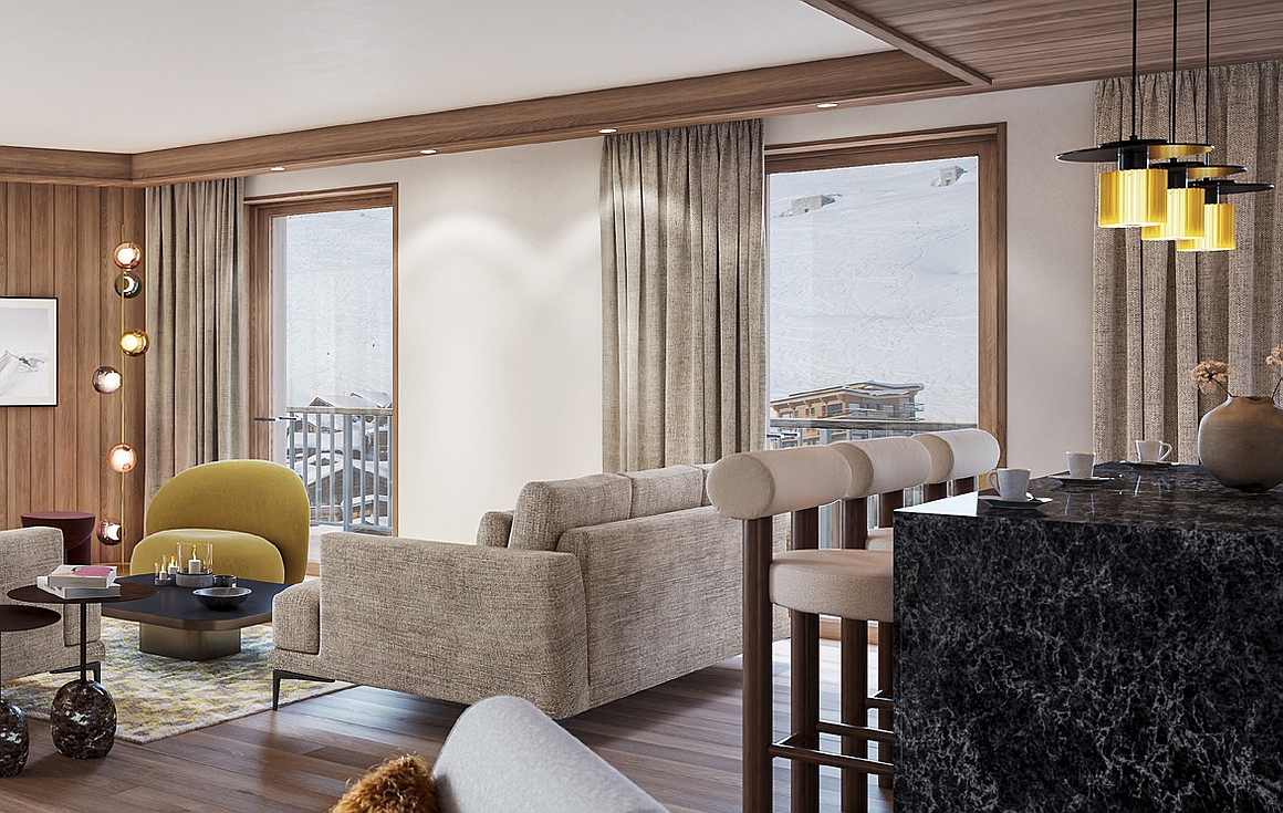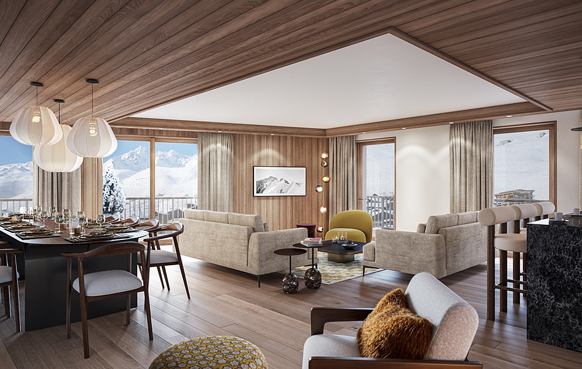 With apartments enjoying stunning views of the mountains or ski slopes and being built by a renowned developer of the Alps, the residence will blend with the contemporary architecture of the resort and will mix wood and stone in harmony with the white facades. To be delivered in quarter 4 of 2028 and centrally situated to access the local amenities, within the residence, owners will enjoy high end finishes in each property and access to the contemporary wellness area that includes swimming pool, sauna, hammam, jacuzzi and gym.