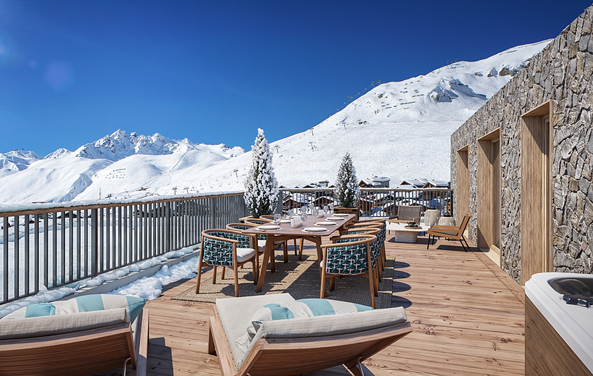 These 3 bedroom ski in and out apartments set in the Le Lavachet area of Tignes at an altitude of 2100m, will be found within this brand new development of 19 luxury 2 - 5 bedroom apartments that forms part of the global rejuvenation of this neighbourhood of the resort, which includes a brand new slope, beginners area, hotel with roof top bar, 2 restaurants, ski school, kids club and 1900m2 wellness area with swimmimg pool Effortlessly combining style, elegance and convenience, the 3 bedroom apartments will offer internal surfaces of 66 - 85m2 plus balconies totalling 7 - 23m2.
