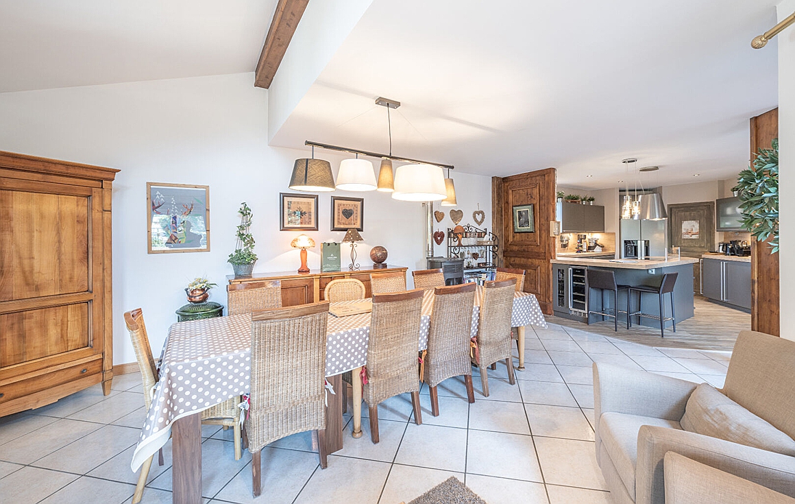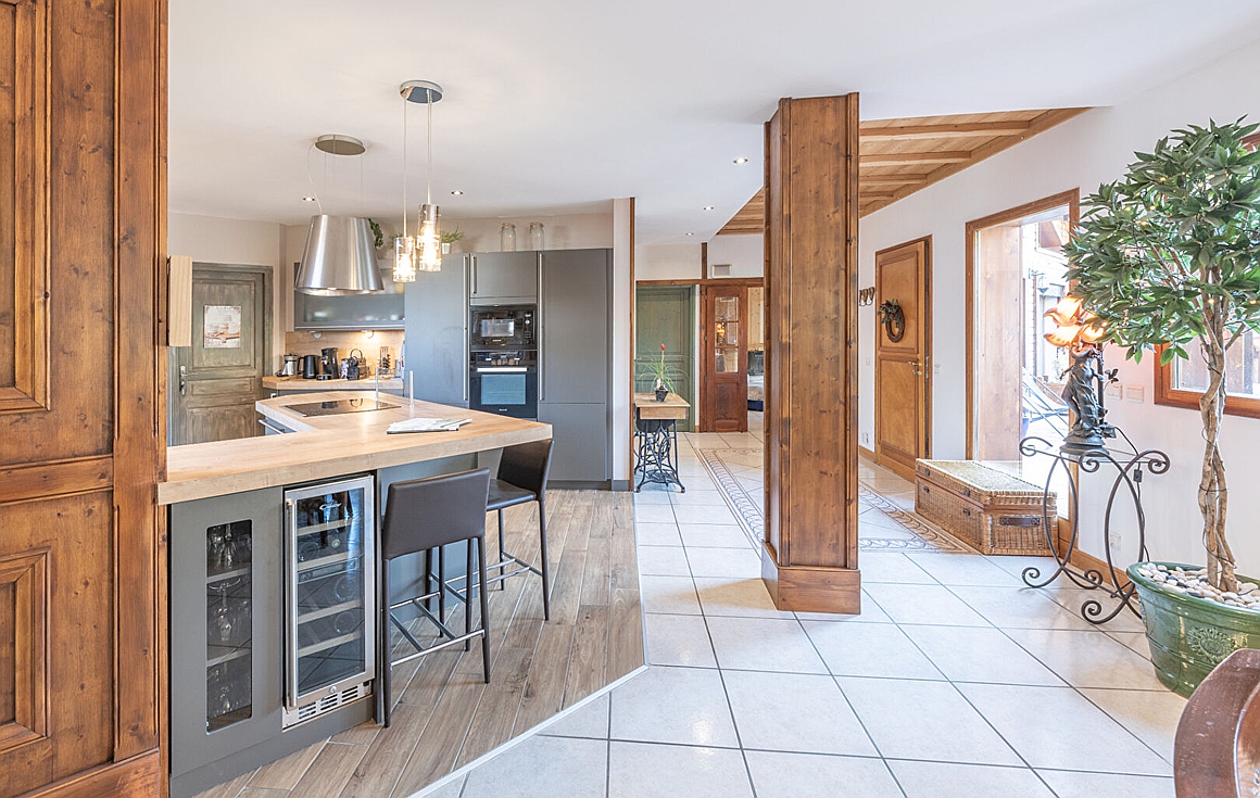This warm and welcoming chalet combines traditional wood textures with refined finishes, creating a serene retreat just minutes from world-class skiing and vibrant village life. The sun-drenched terrace is perfect for entertaining or unwinding, while the open-plan kitchen and living areas invite connection and calm.