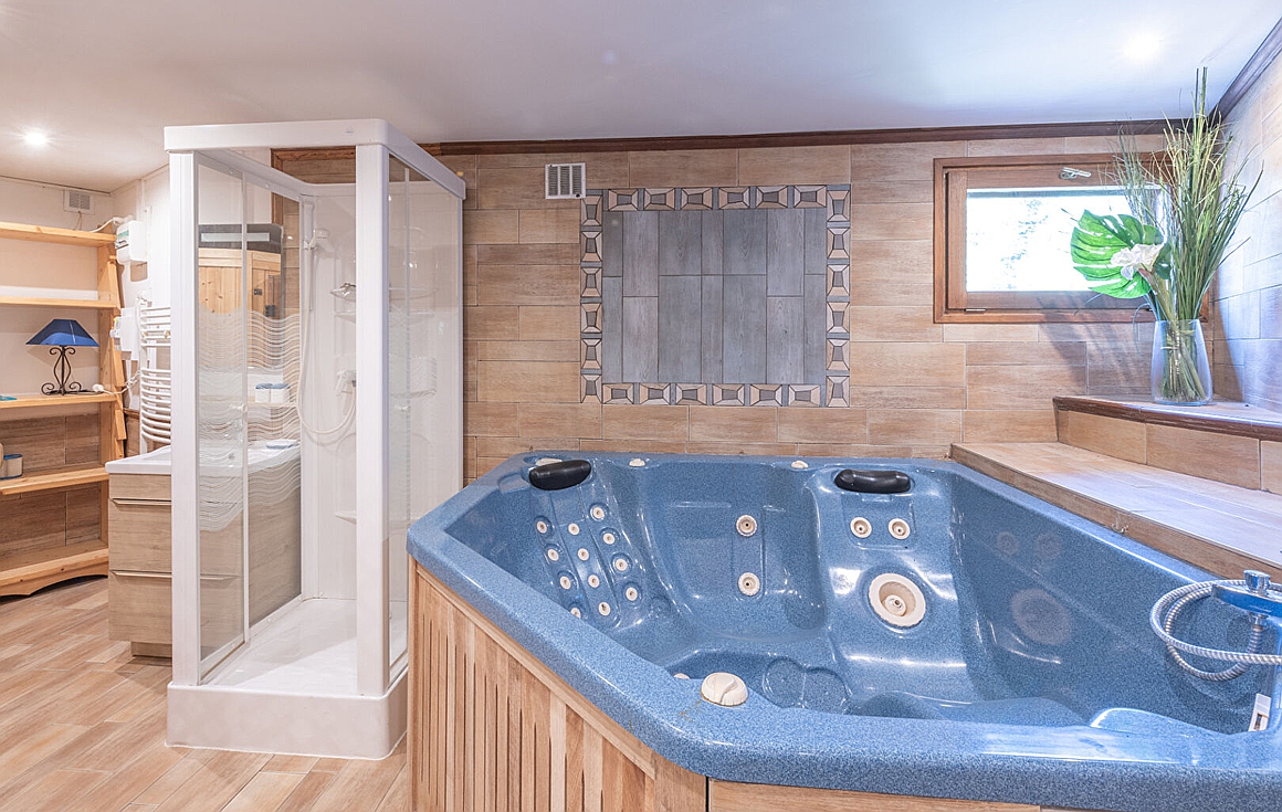 • Spa-style amenities including jacuzzi and sauna