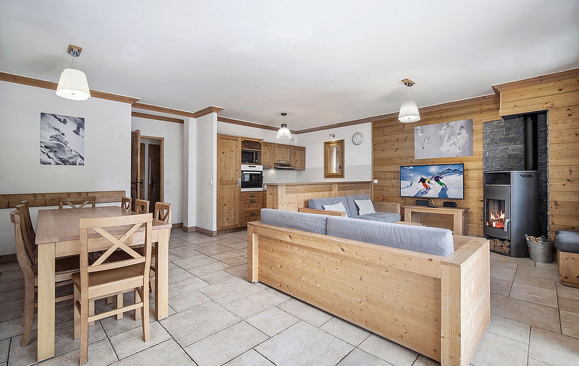 Ideally positioned at the foot of the slopes for a true ski in and out experience in the heart of Les Menuires, this beautifully appointed 99m2 apartment offers 4 double bedrooms and a west-facing terrace with stunning mountain views. Thoughtfully designed to welcome up to 8 guests, the home enjoys exceptional natural light, a spacious open-plan living area with a wood-burning stove, and an inviting kitchen and dining space perfect for après-ski moments with family or friends.