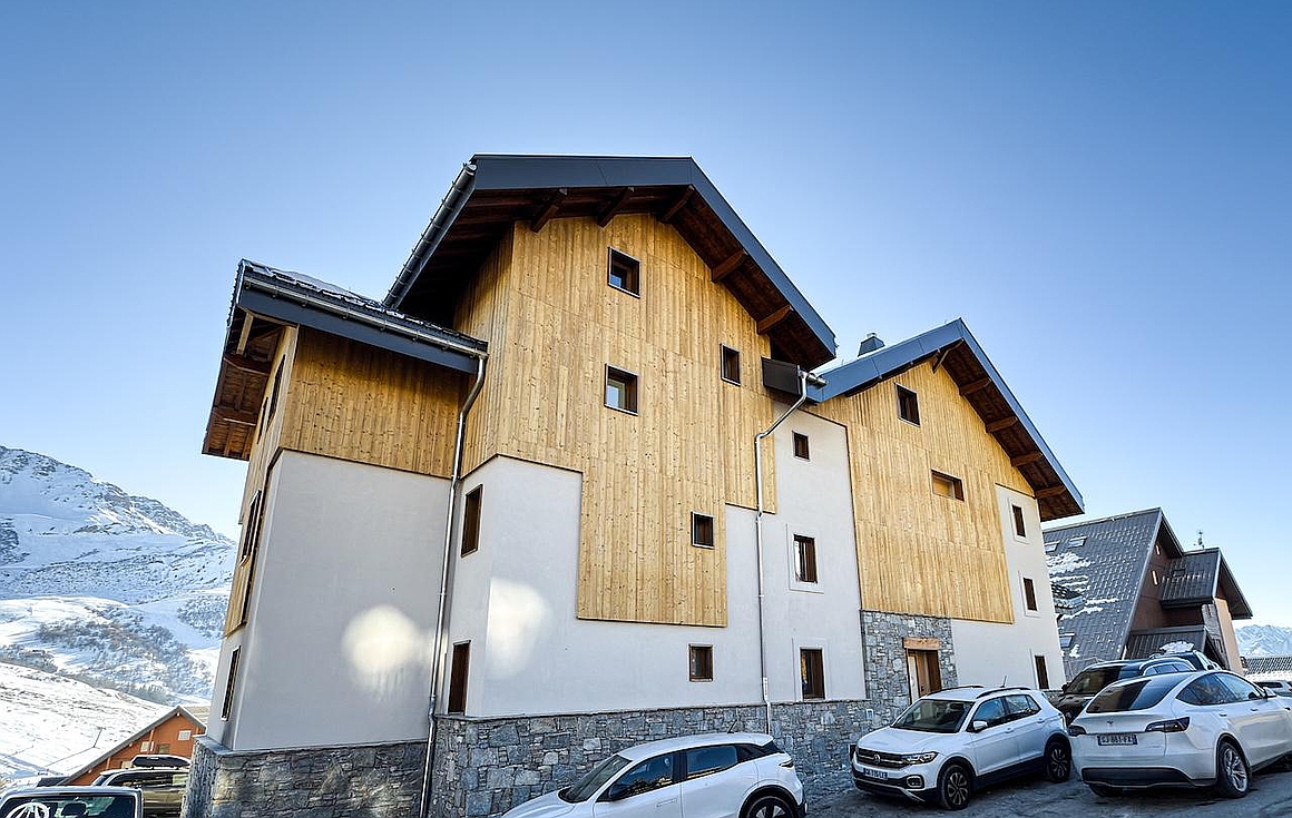 In a fantastic location for both skiers and road cyclists alike, this brand new development of just 10 intimate south facing apartments in a delightful new chalet residence can be found literally 90m from the ski slopes of the 160km Valmorel - St Francois ski domain as well as being moments from the famous Col de Madelaine tackled by the Tour de France regularly including 2025, making this an ideal winter and summer destination. The 3 double bedroom duplex, penthouse, apartment (No 9) with stunning views will enjoy a habitable surface of 109m2 plus a further 14m2 under 1.8m and balcony of 10m2.
