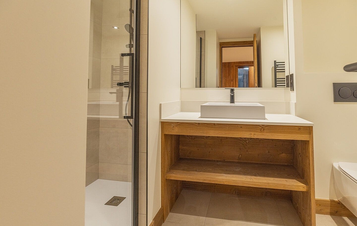 After a day on the slopes, the fully equipped ski room at the entrance allows for effortless storage and drying, while the private sauna offers a moment of calm and recovery. Each of the four bedrooms benefits from its own bathroom, ensuring comfort and privacy for family and guests alike. Two outdoor parking spaces complete this rare opportunity, enhanced by reduced notary fees and the possibility of VAT recovery of 20% through rental management.