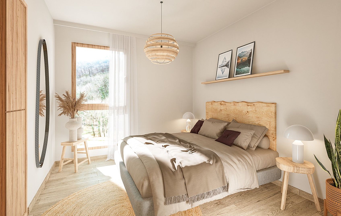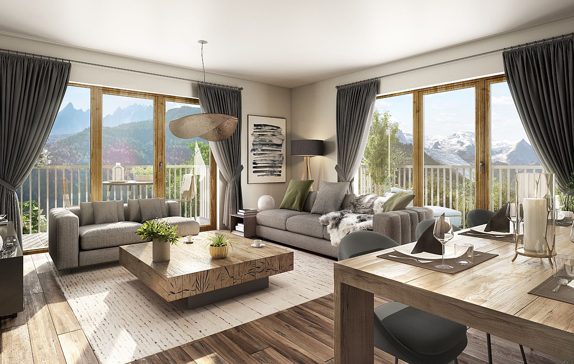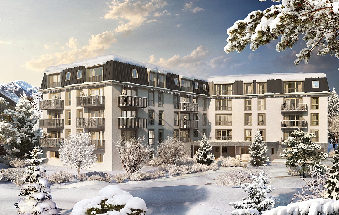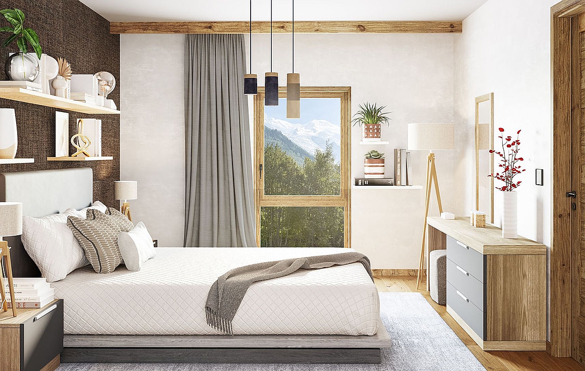 Designed in harmony with traditional Chamonix architecture, the residence reflects timeless mountain elegance, ensuring lasting value. Inside, the apartment features a bright living area with an open-plan fitted kitchen, perfectly oriented to capture the morning light. The mountain corner provides additional sleeping space, ideal for guests or family stays, while the bathroom is finished with contemporary refinement.